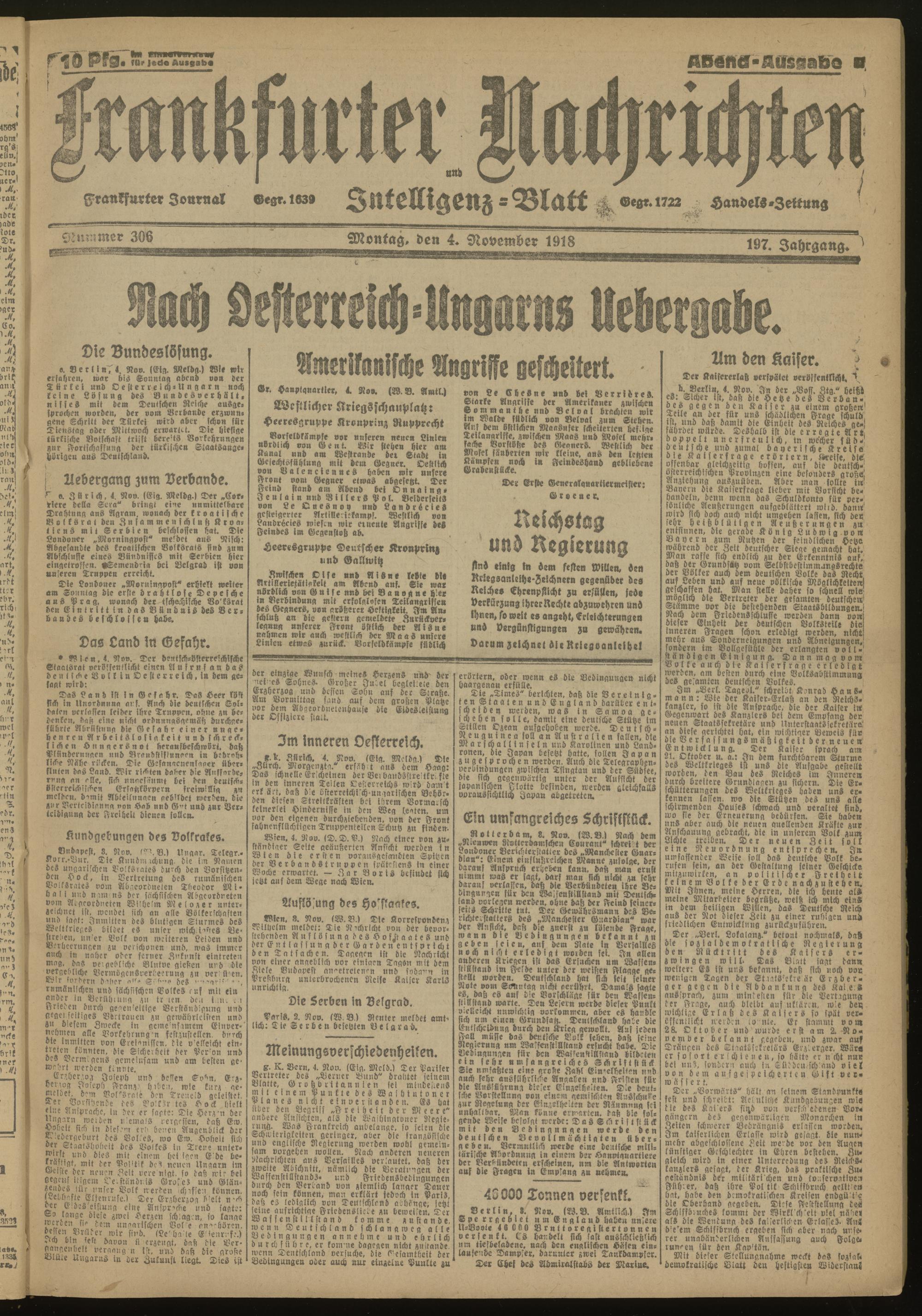 04.11.1918 Morgen-Ausgabe = Nr. 306