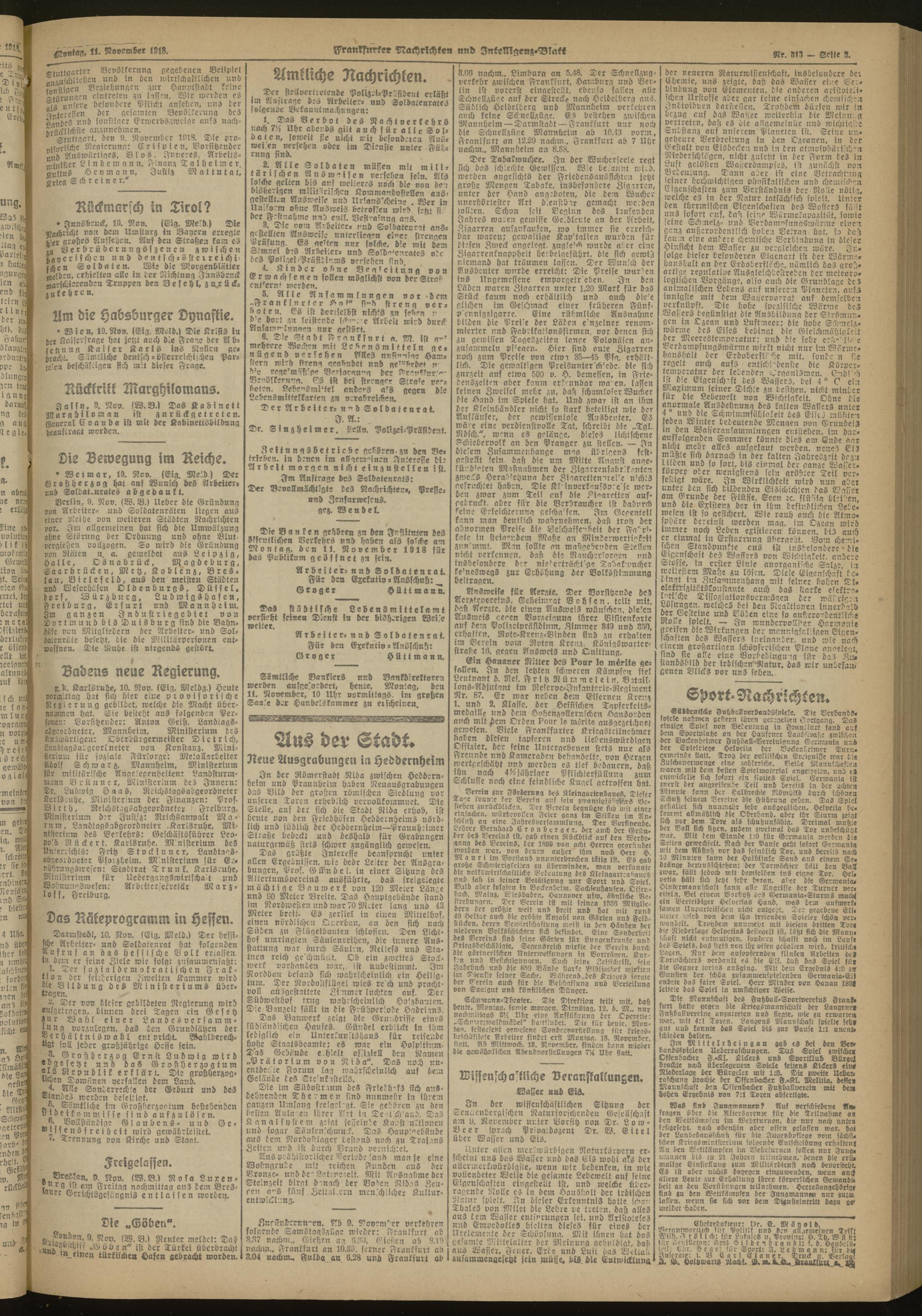 11.11.1918 Morgen-Ausgabe = Nr. 313