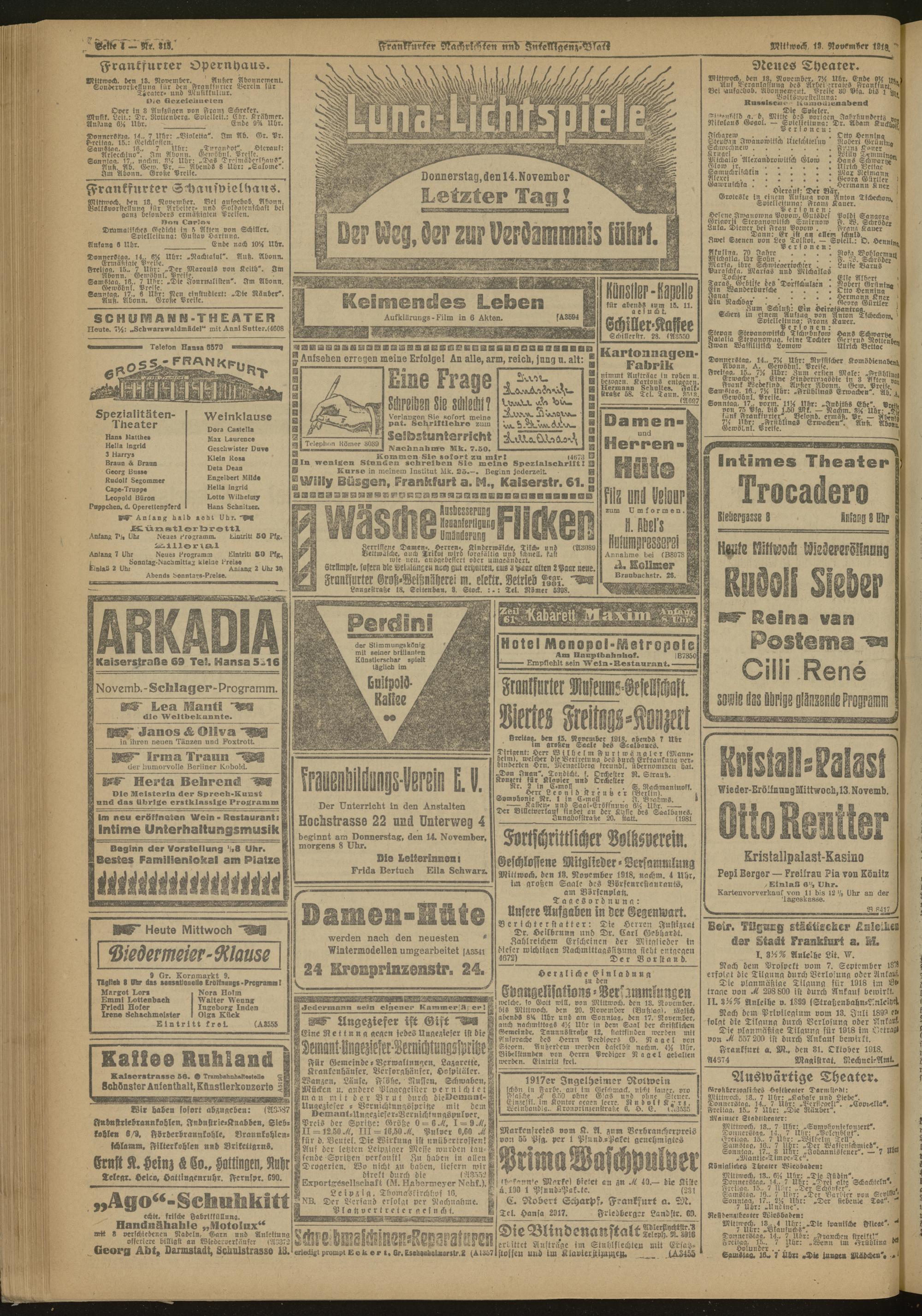 13.11.1918 Morgen-Ausgabe = Nr. 315