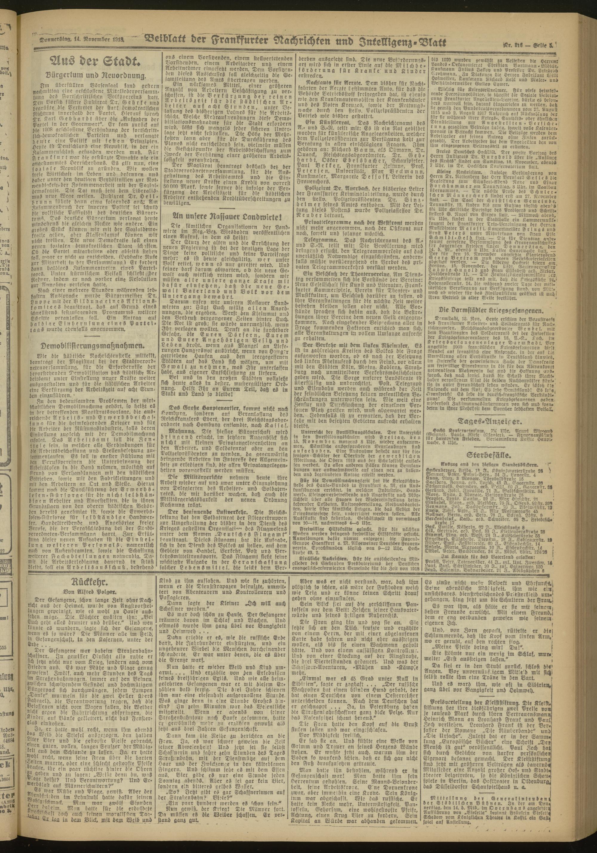 14.11.1918 Morgen-Ausgabe = Nr. 316
