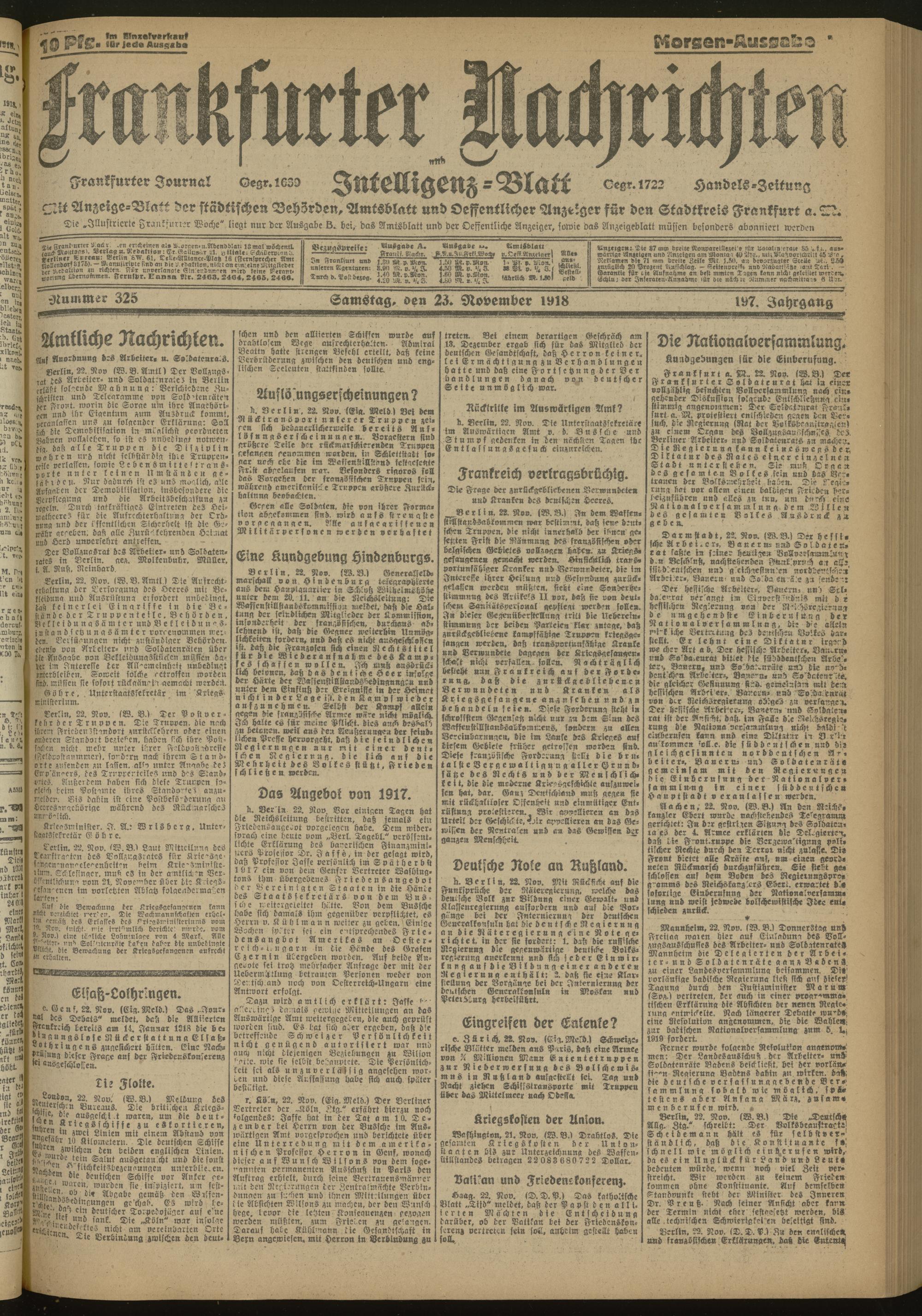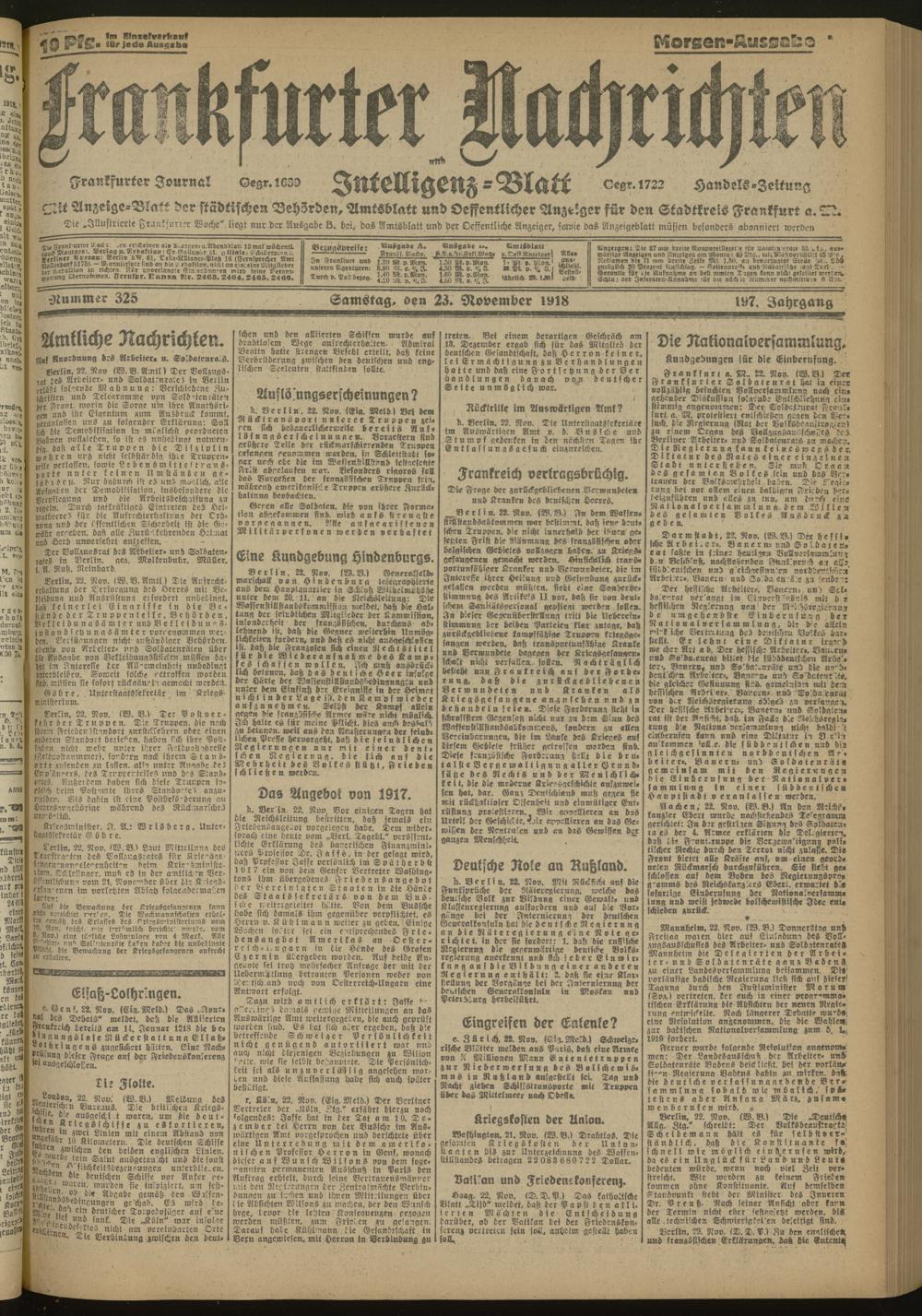 23.11.1918 Morgen-Ausgabe = Nr. 325