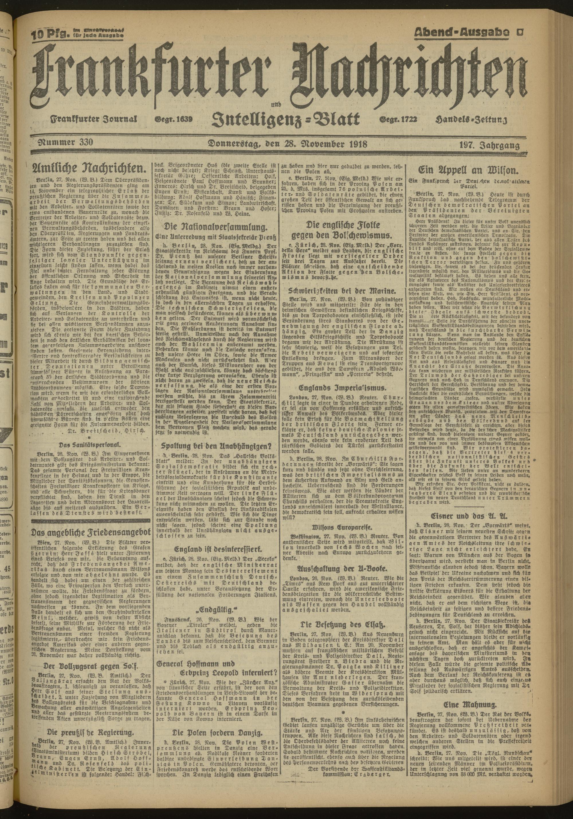 28.11.1918 Abend-Ausgabe = Nr. 330
