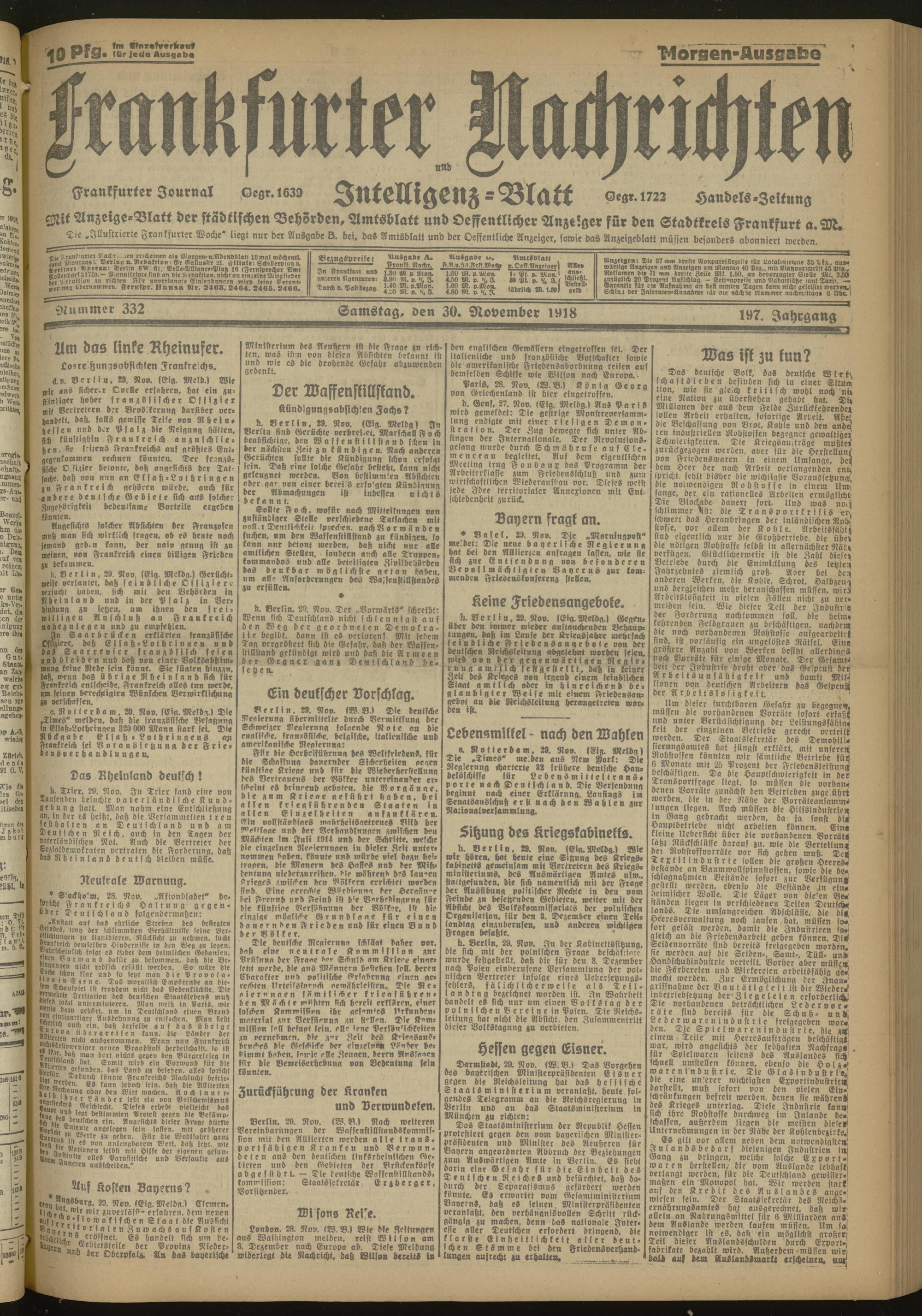 30.11.1918 Morgen-Ausgabe = Nr. 332