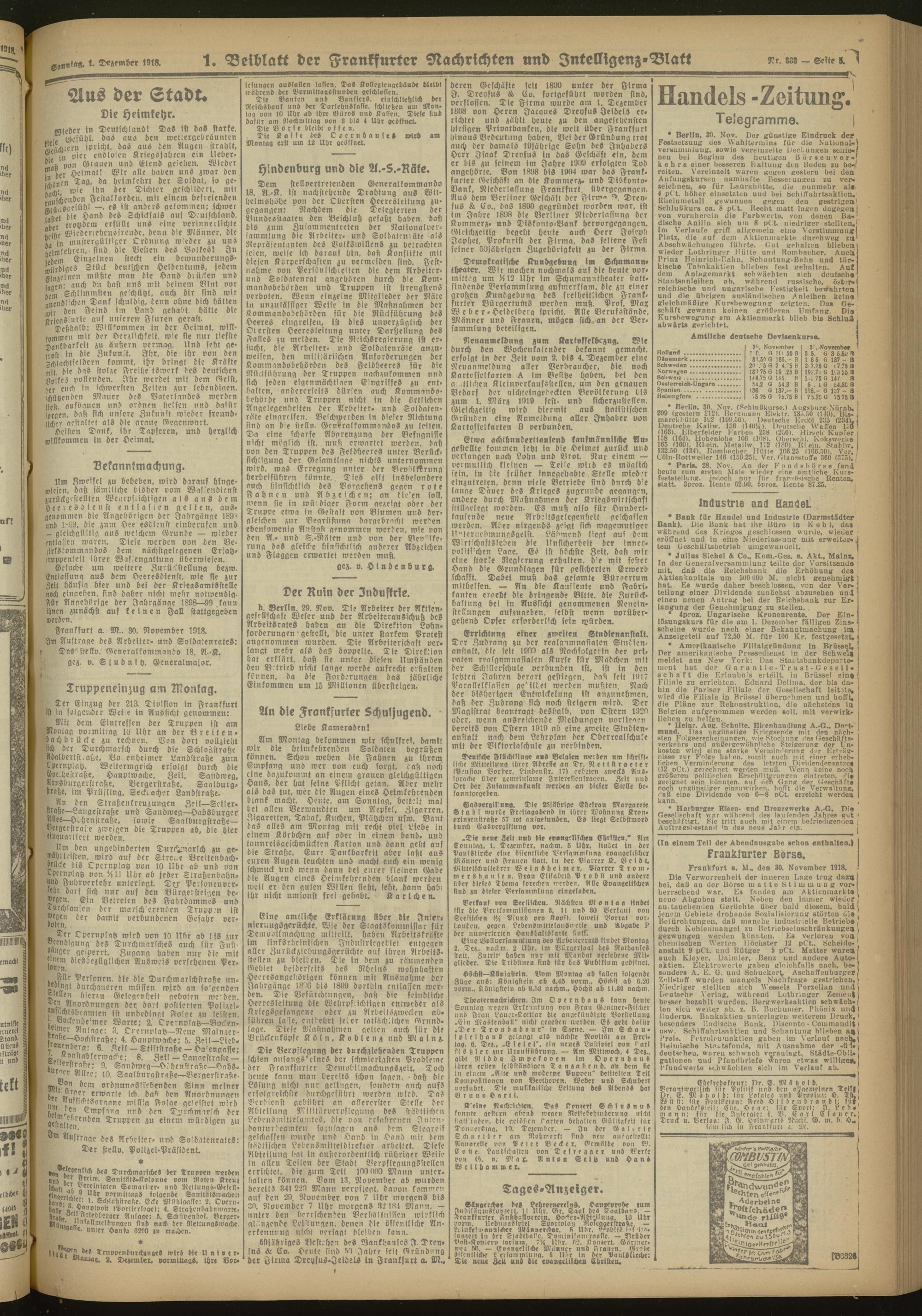 01.12.1918 Morgen-Ausgabe = Nr. 333