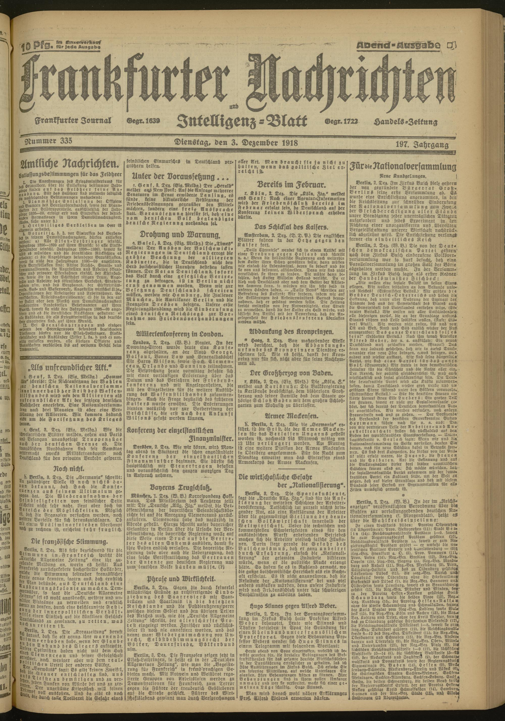 03.12.1918 Abend-Ausgabe = Nr. 335