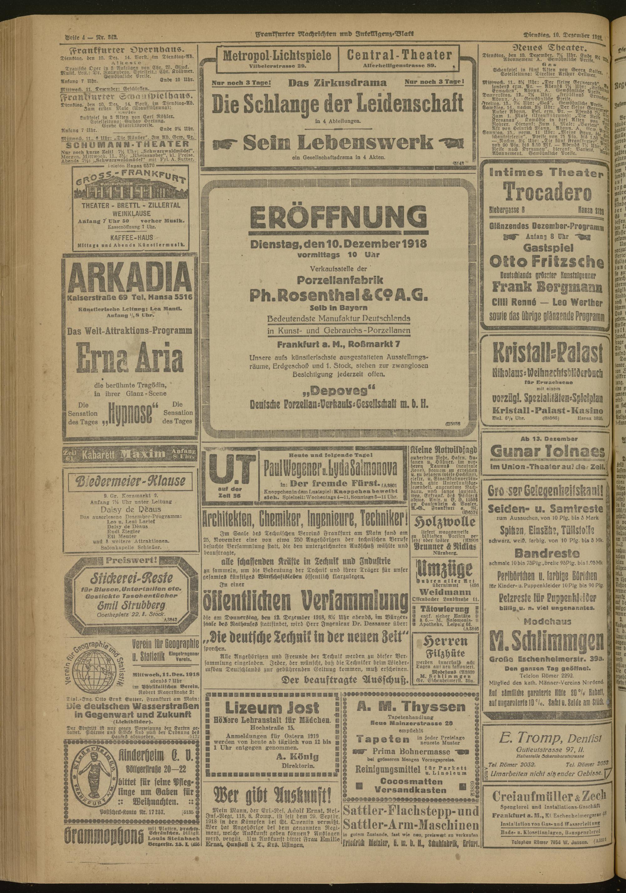 10.12.1918 Morgen-Ausgabe = Nr. 342
