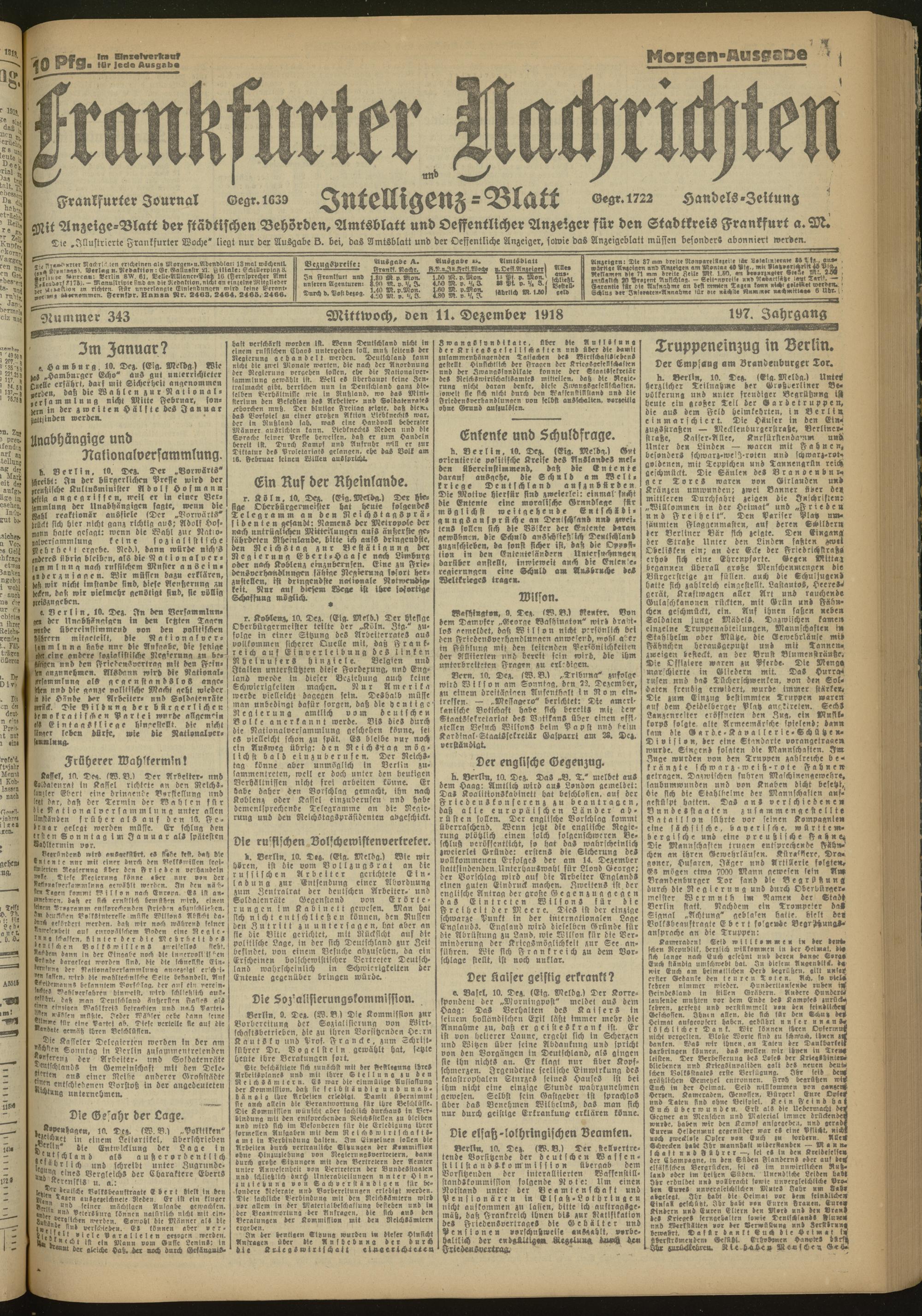 11.12.1918 Morgen-Ausgabe = Nr. 343