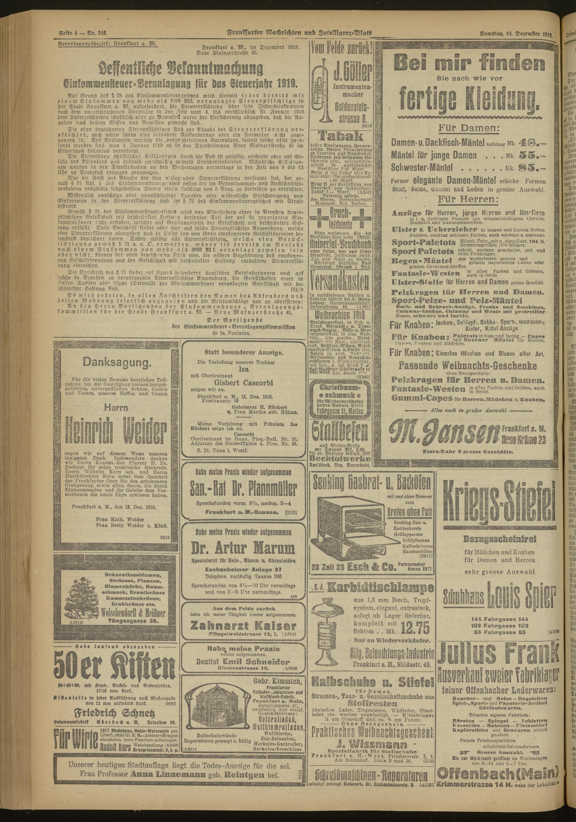 14.12.1918 Morgen-Ausgabe = Nr. 346