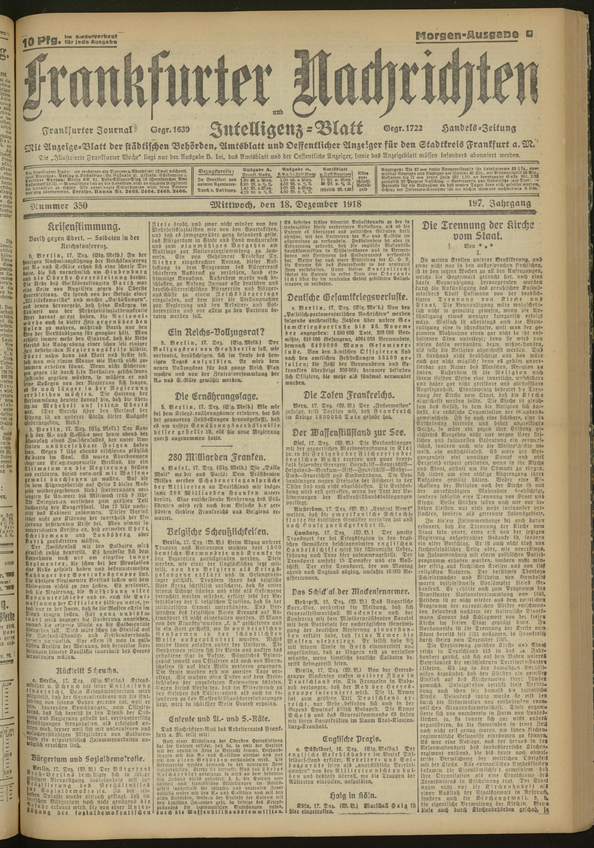 18.12.1918 Morgen-Ausgabe = Nr. 350
