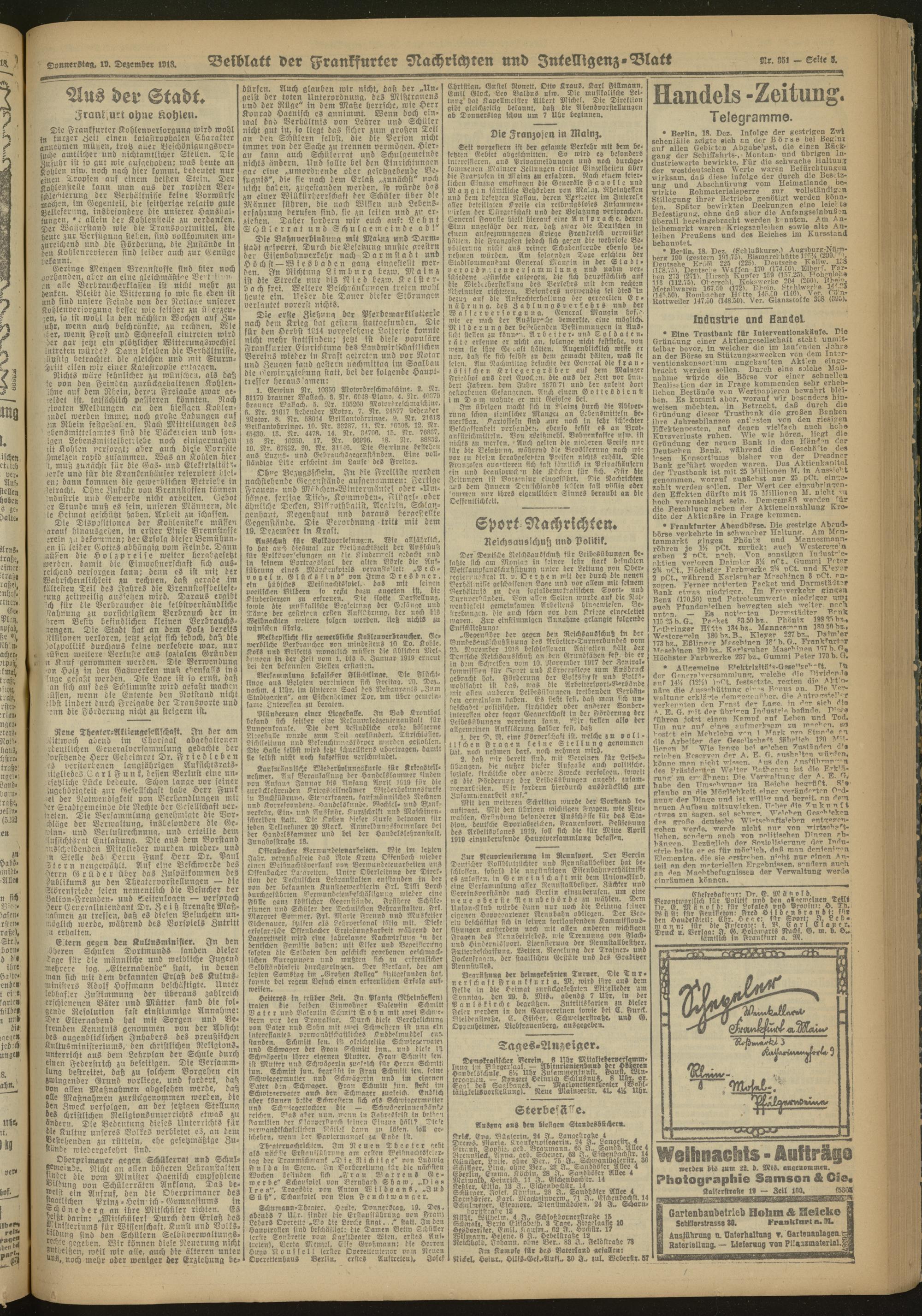19.12.1918 Morgen-Ausgabe = Nr. 351