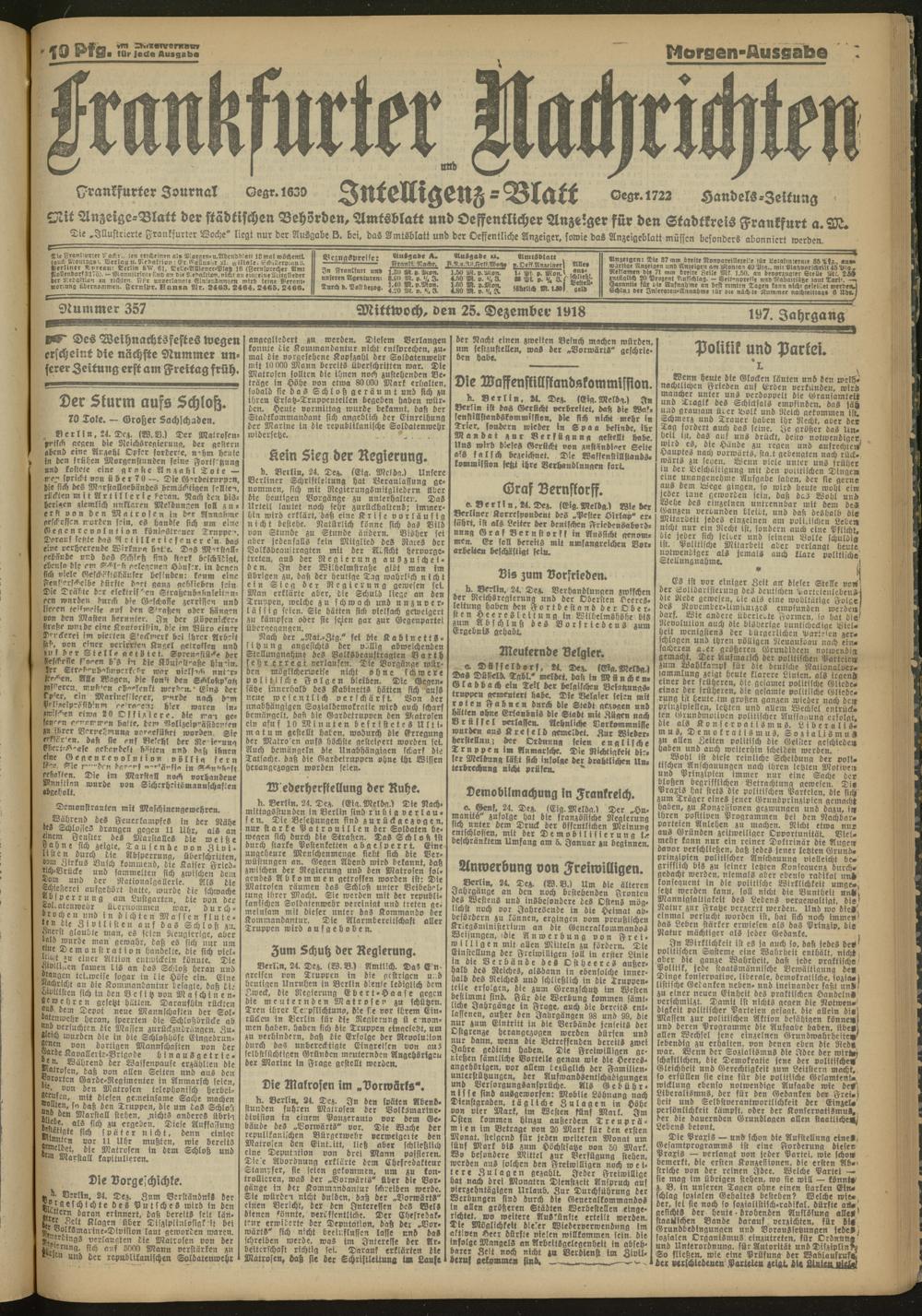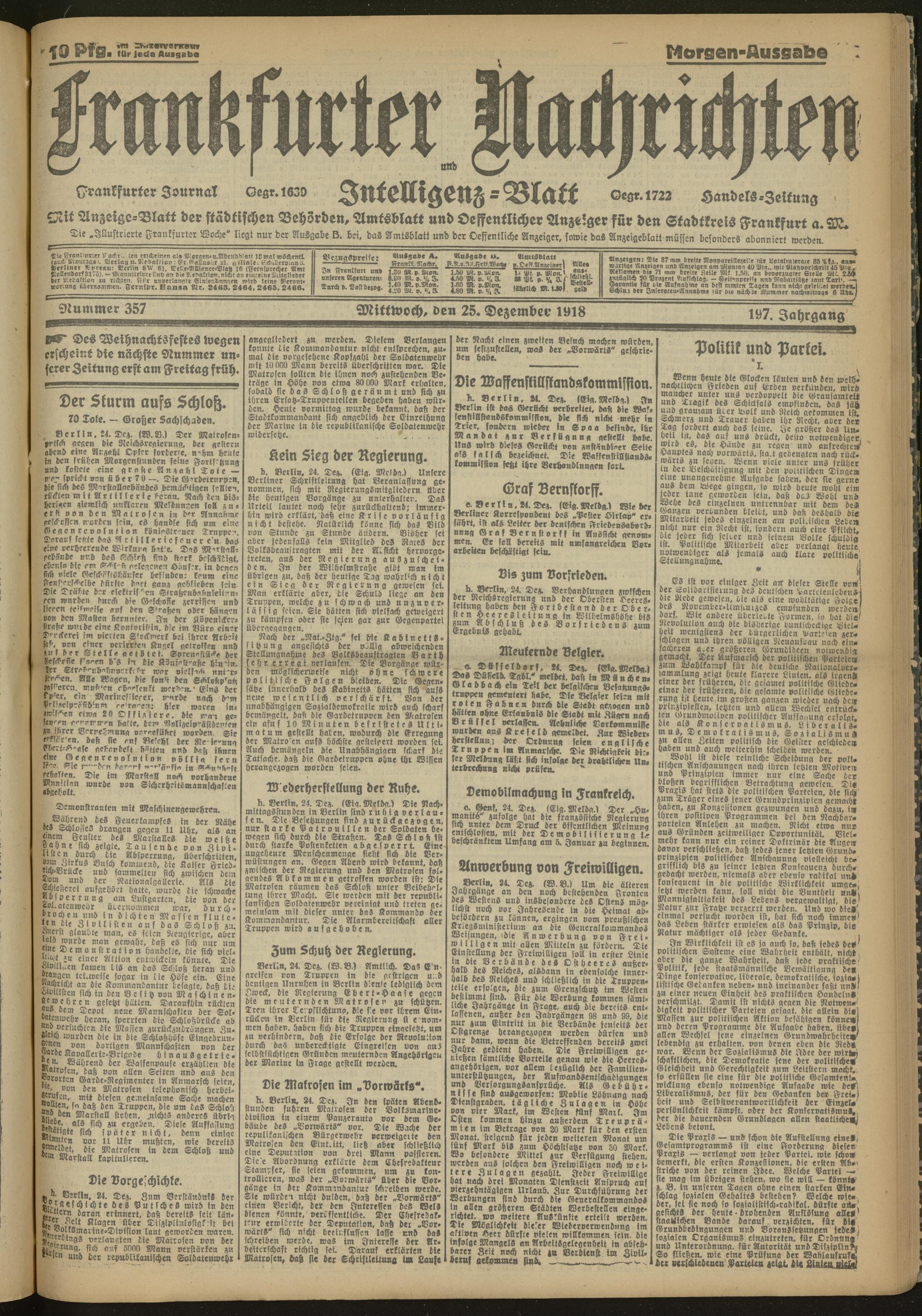 25.12.1918 Morgen-Ausgabe = Nr. 357