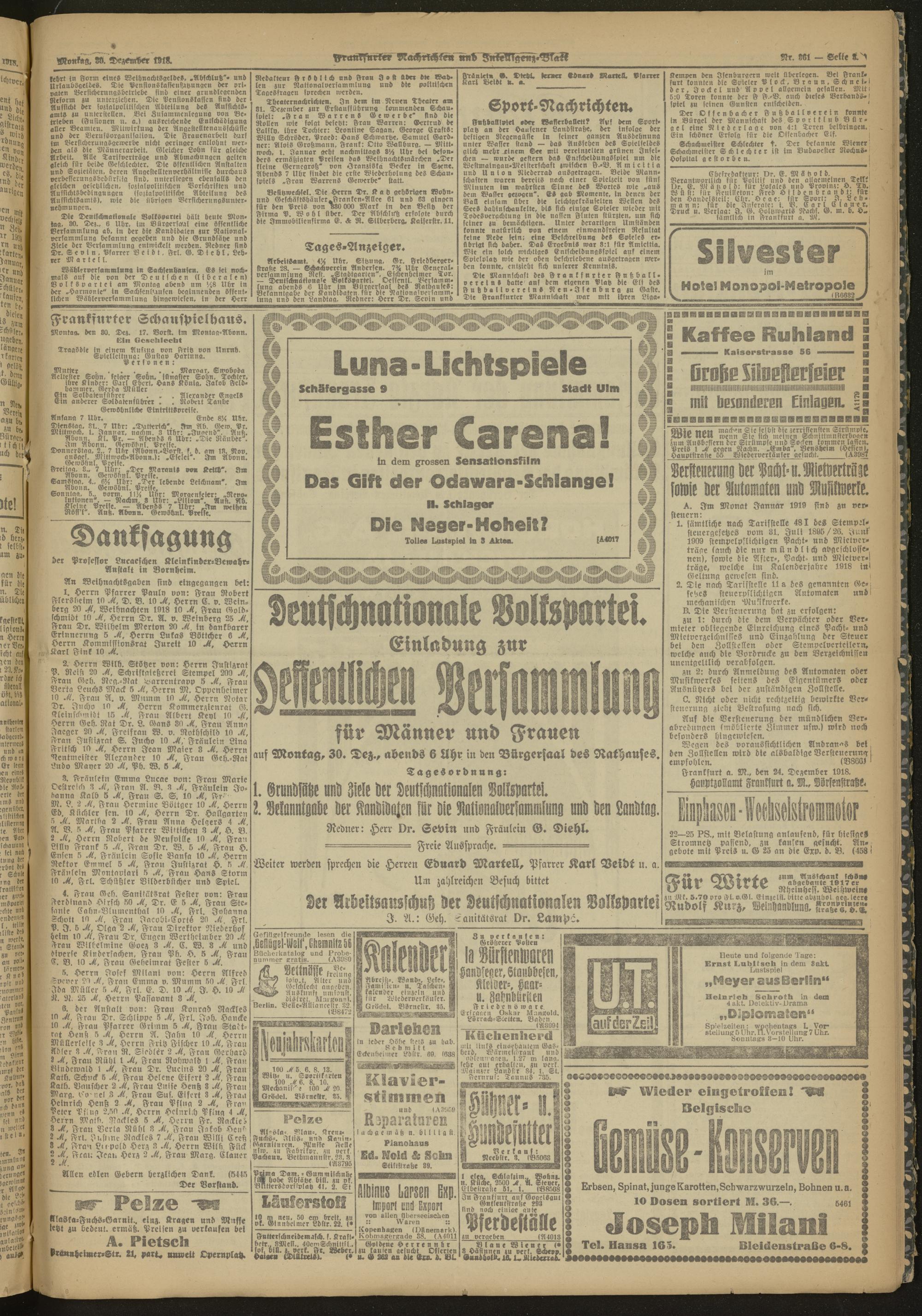30.12.1918 Morgen-Ausgabe = Nr. 361