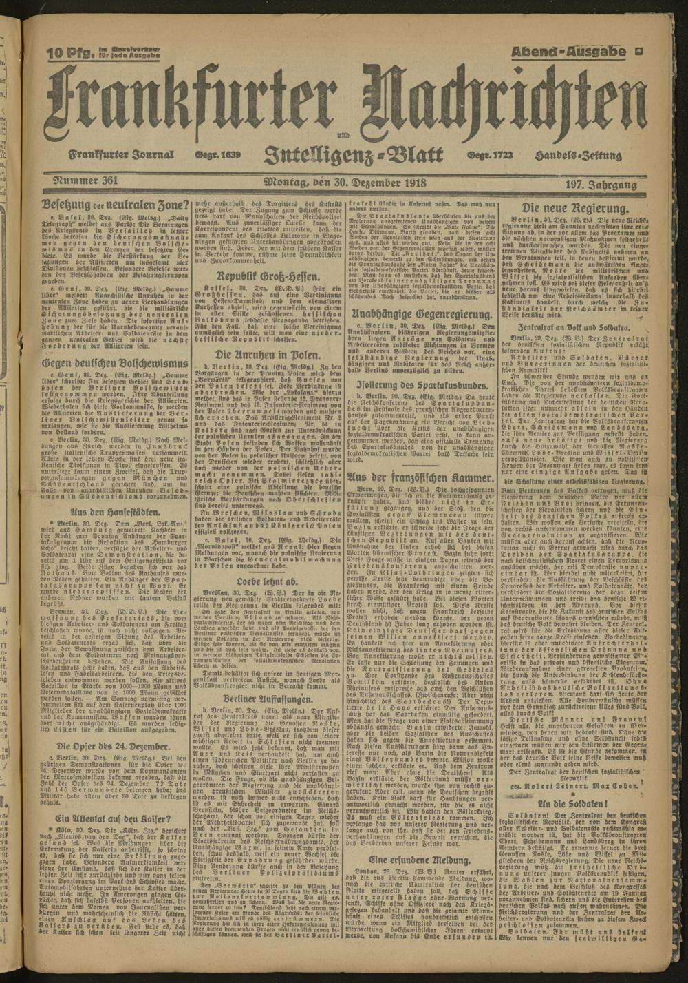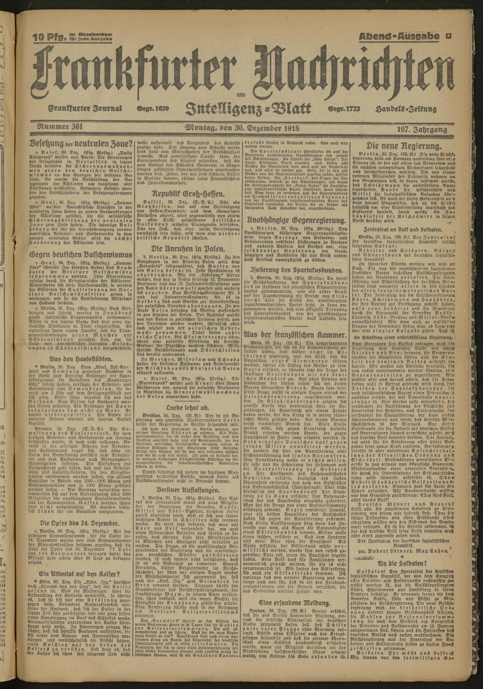 30.12.1918 Abend-Ausgabe = Nr. 361