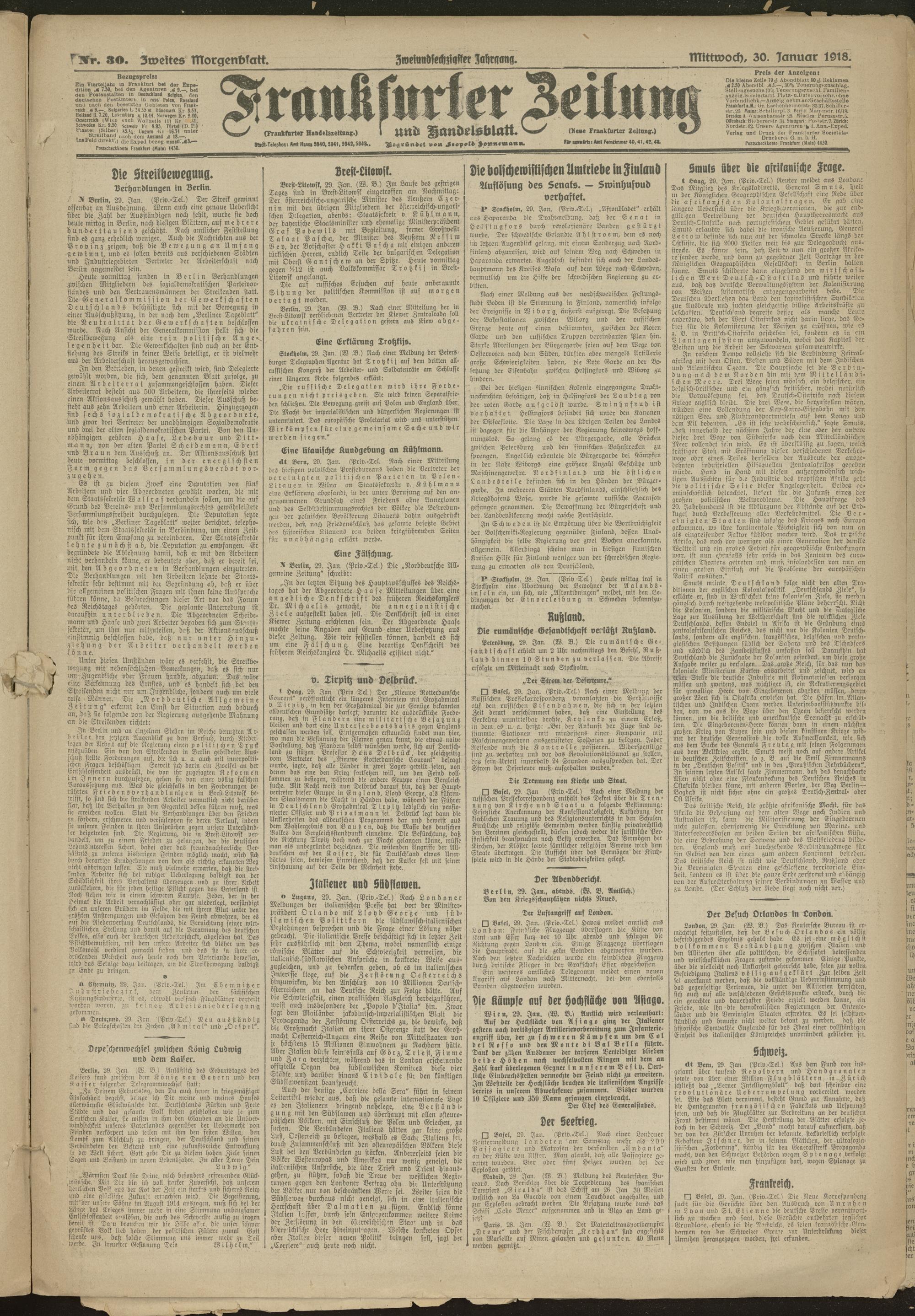 30.01.1918 = Nr. 30. Zweites Morgenblatt