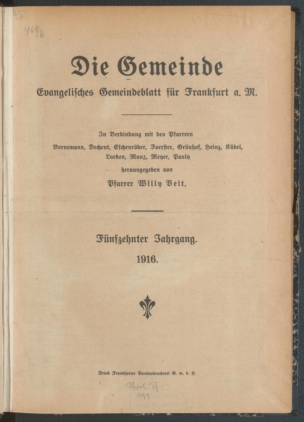 Inhalts-Verzeichnis 1916
