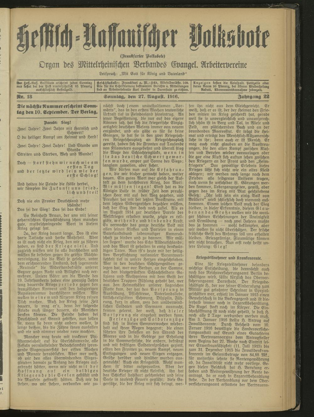 27.08.1916 = Nr. 18