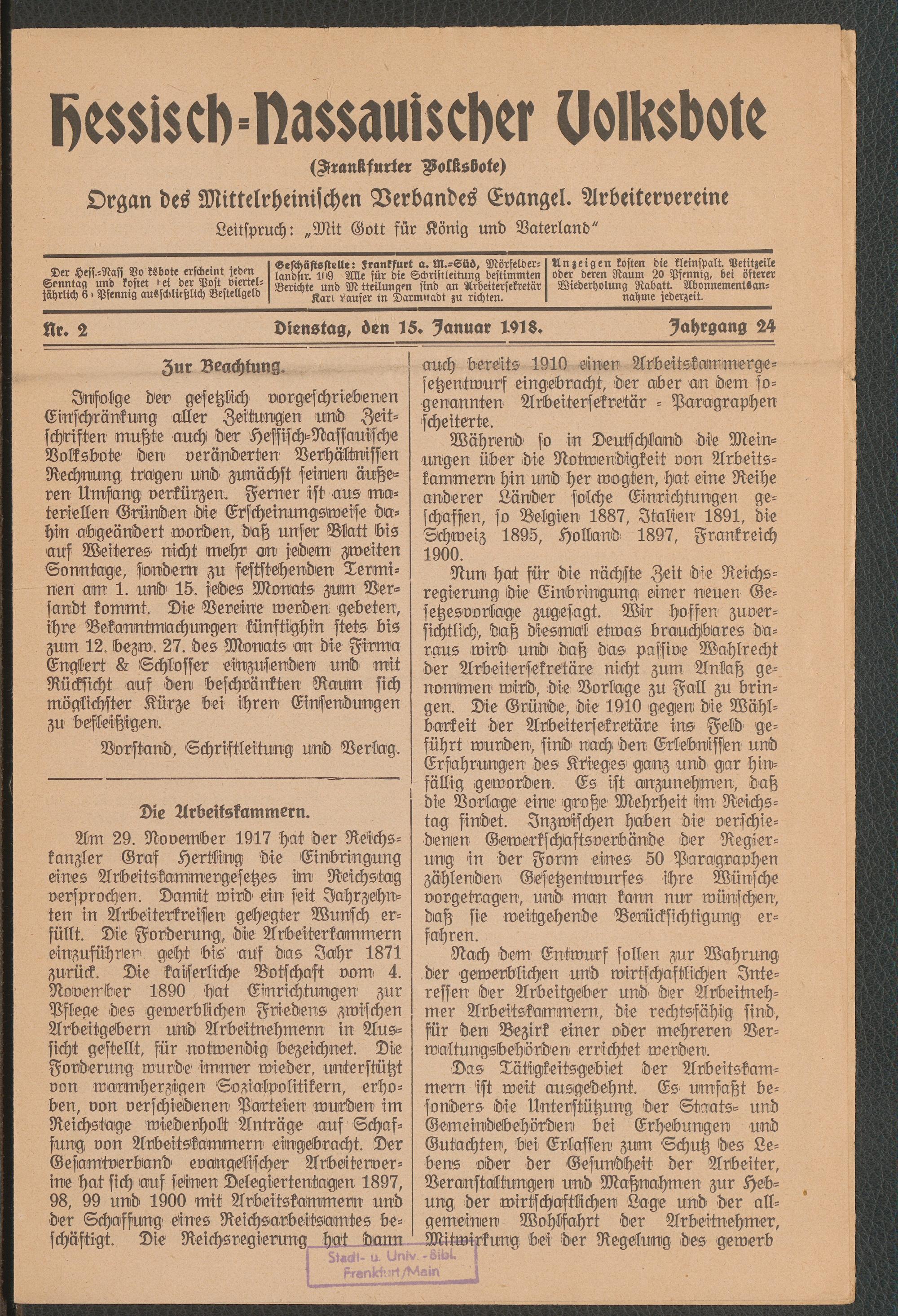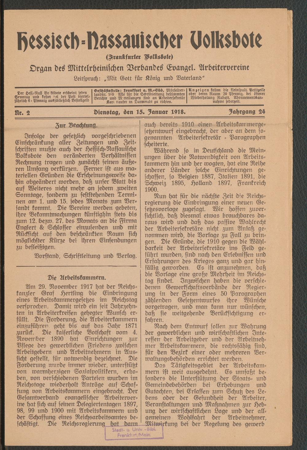 15.01.1918 = Nr. 2