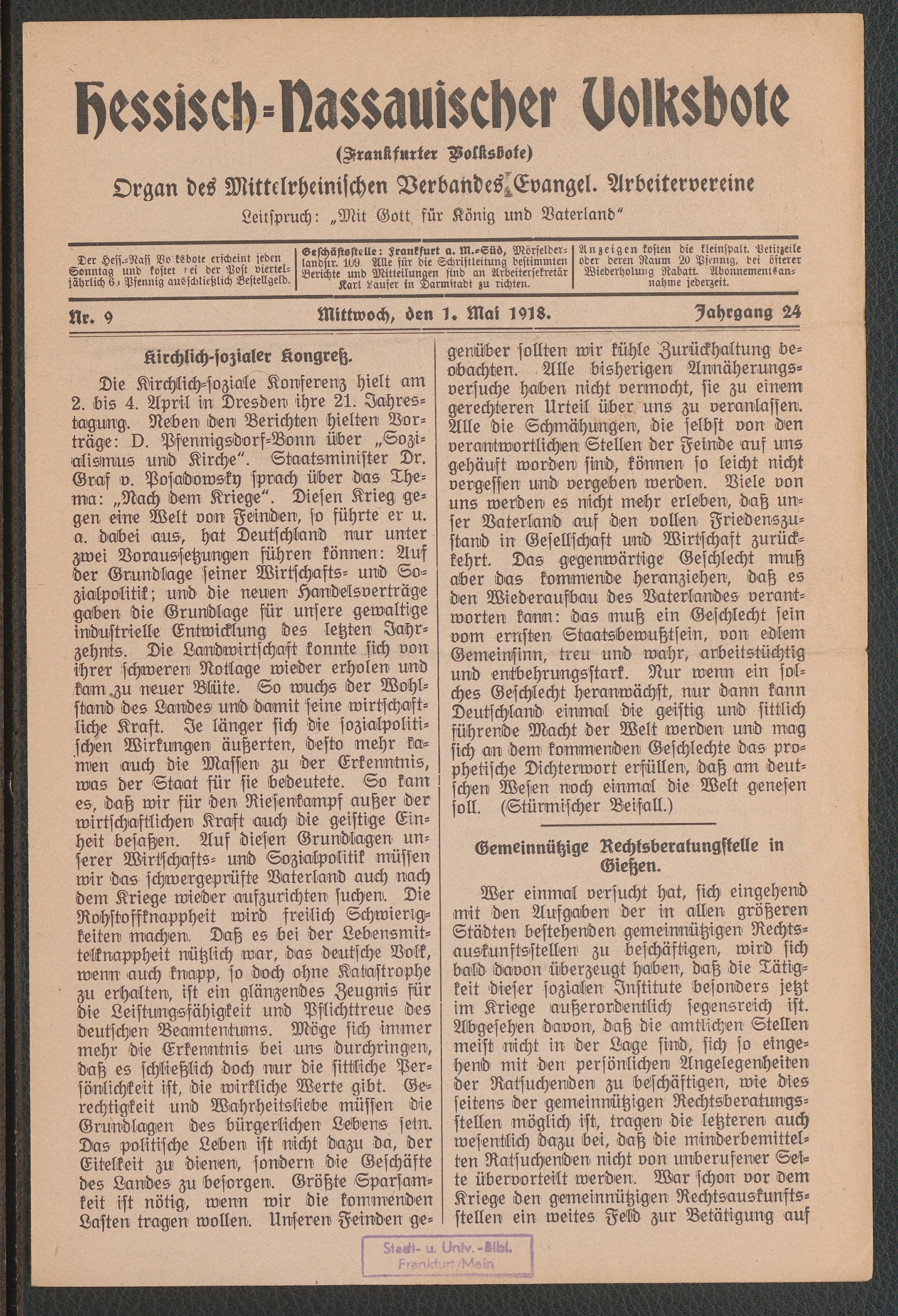01.05.1918 = Nr. 9