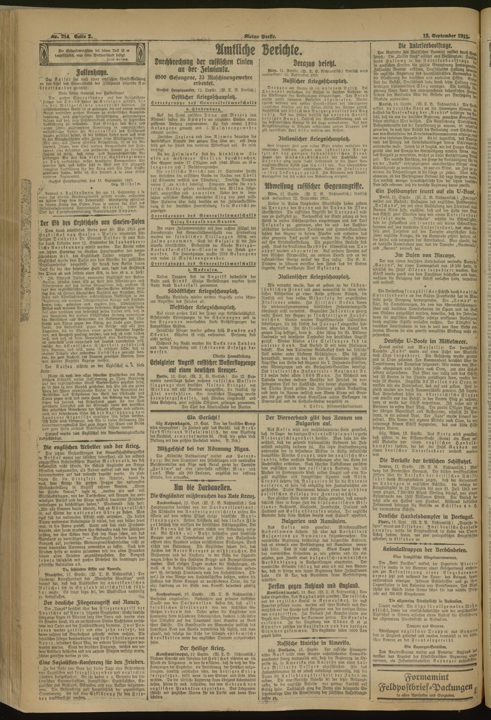 13.09.1915 = Nr. 214