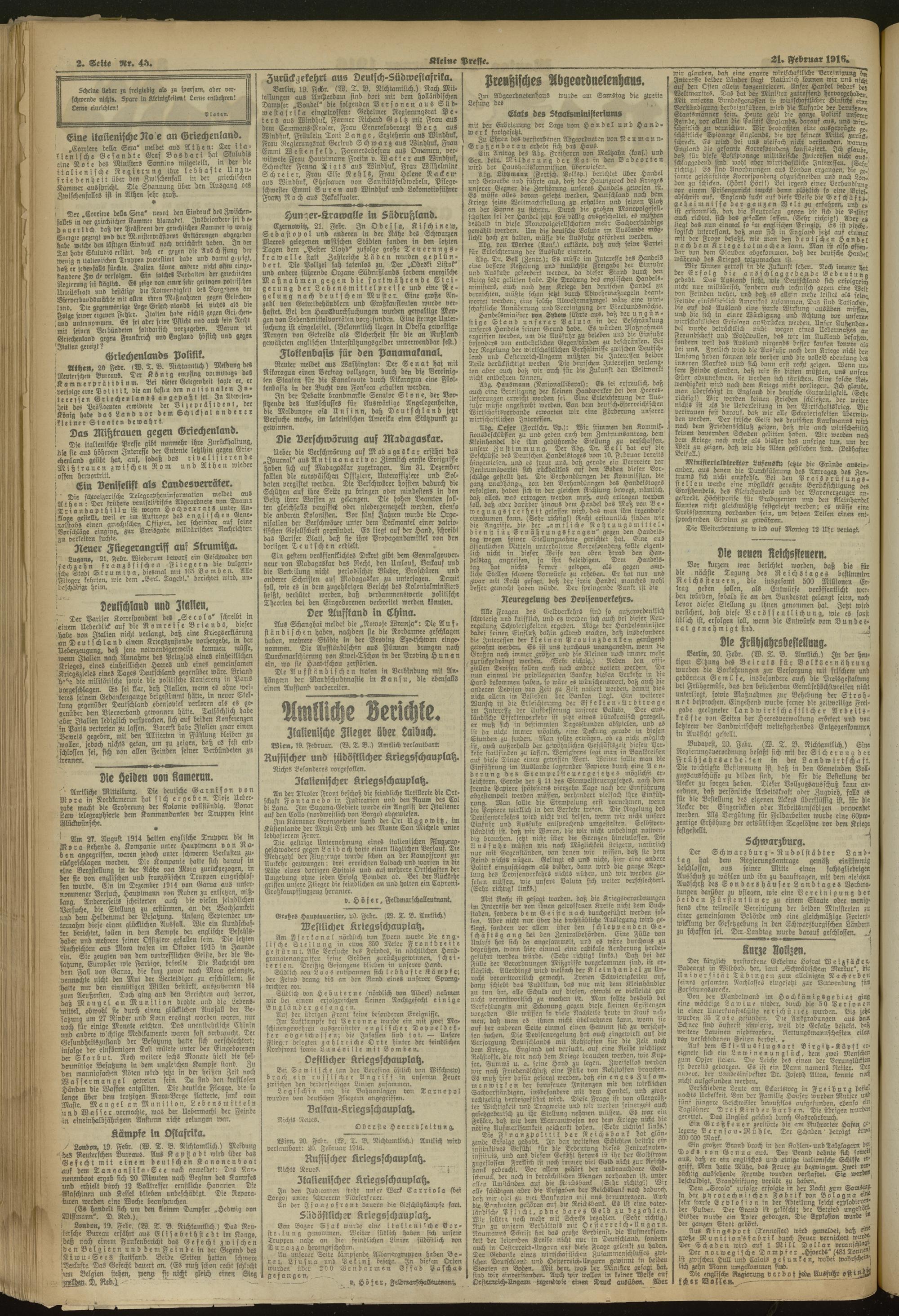 21.02.1916 = Nr. 43