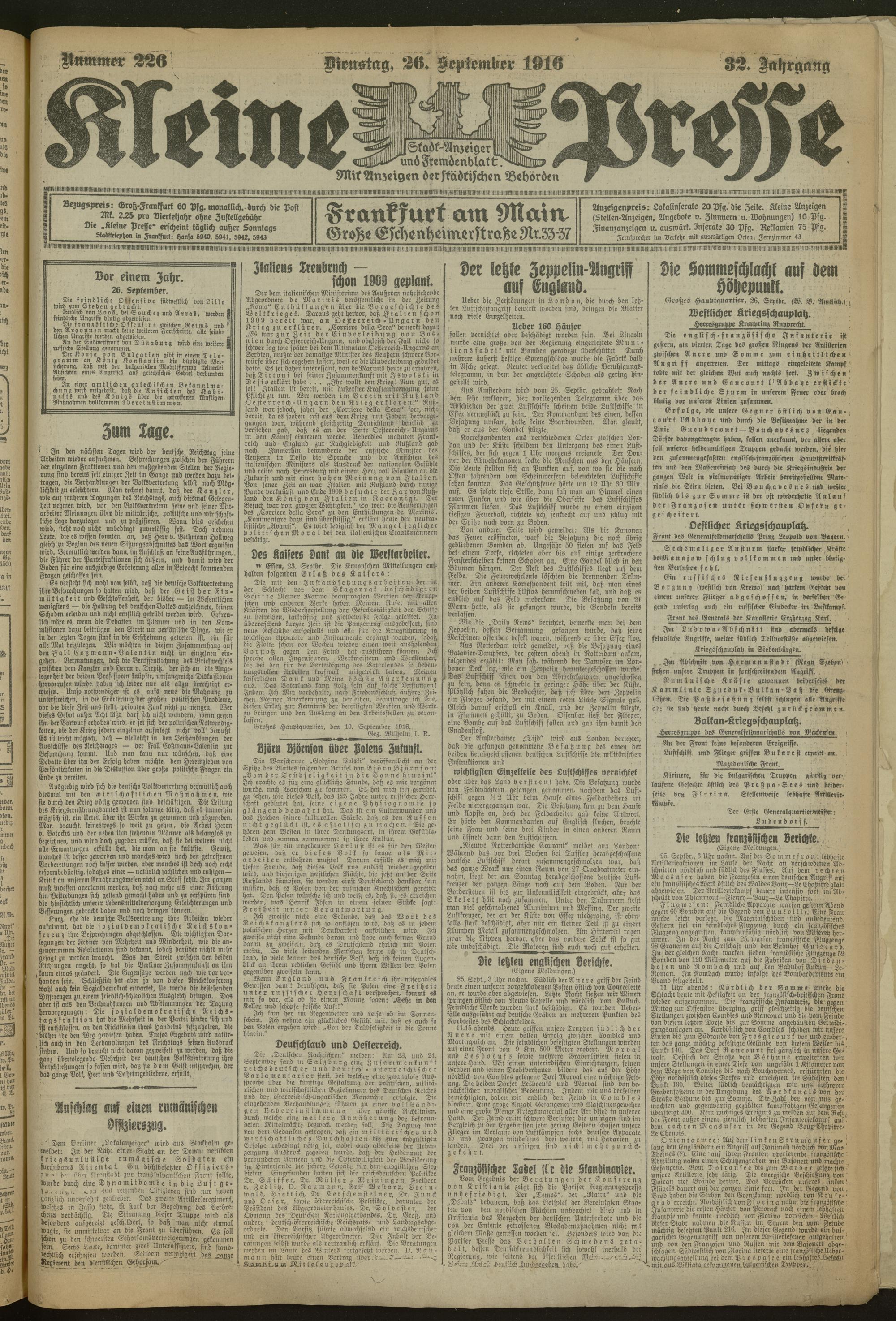 26.09.1916 = Nr. 226