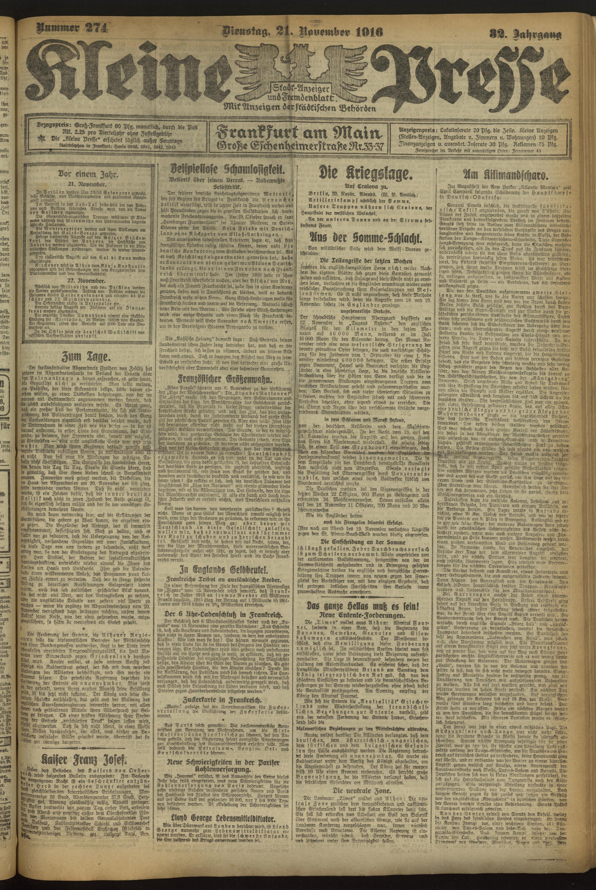 21.11.1916 = Nr. 274