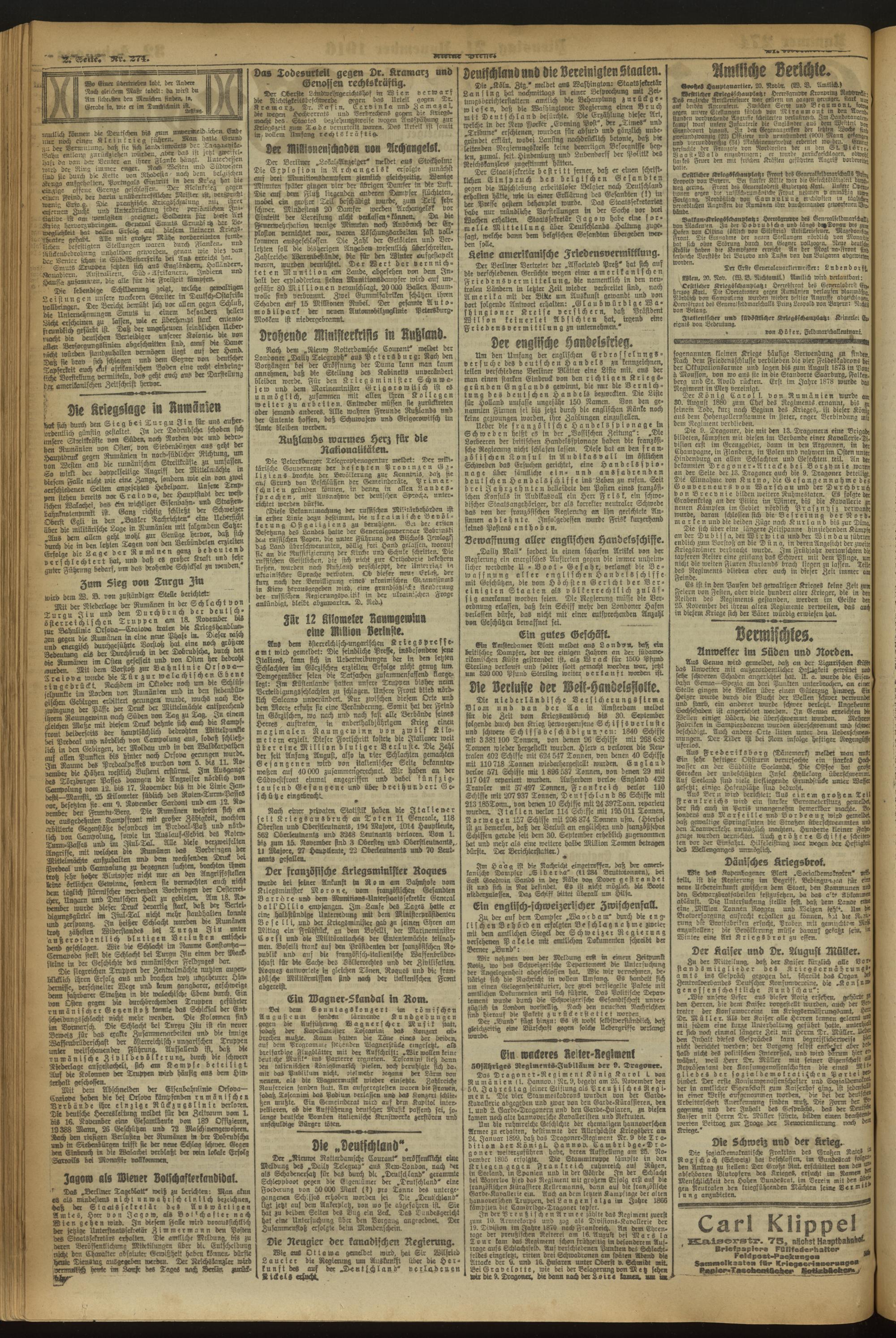 21.11.1916 = Nr. 274
