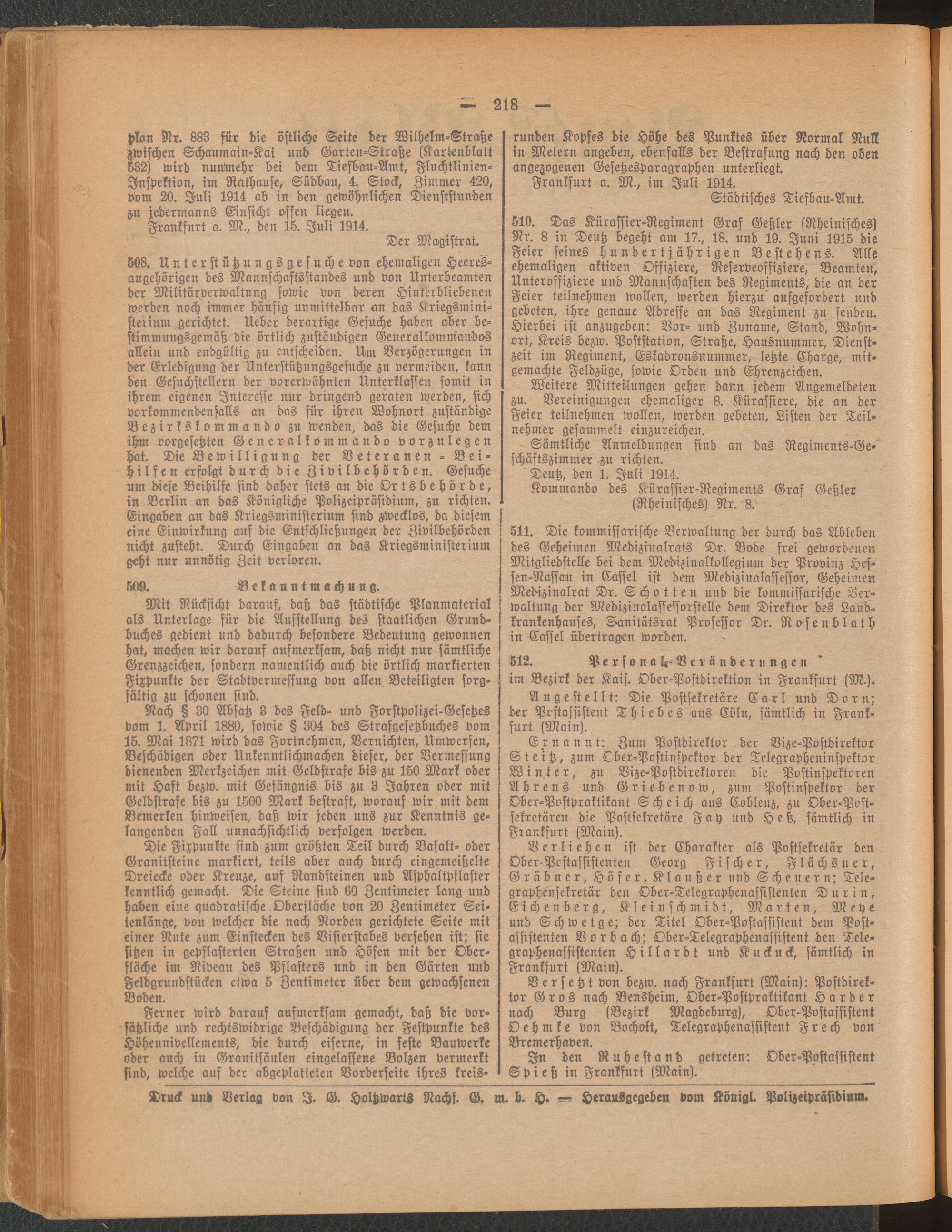 Amtsblatt für den Stadtkreis Frankfurt a.M.. 1828-1918