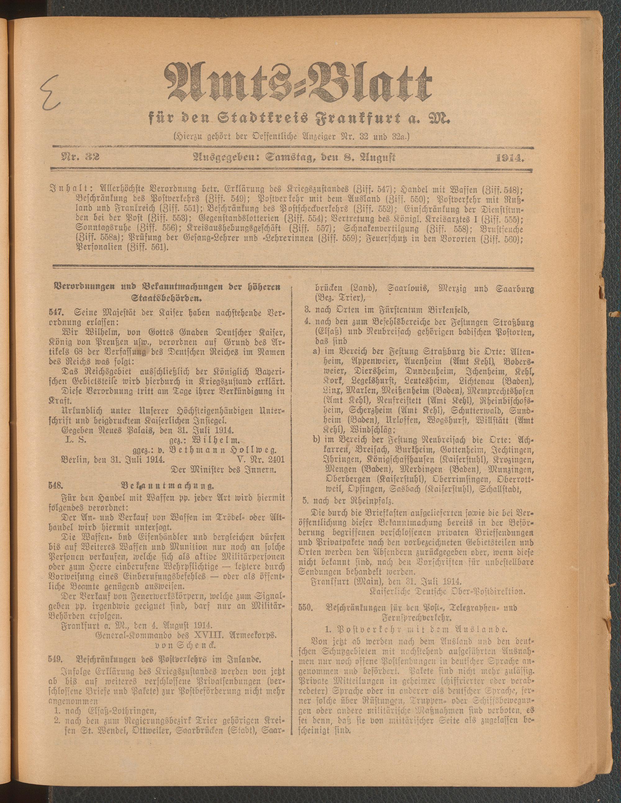 Amtsblatt für den Stadtkreis Frankfurt a.M.....
