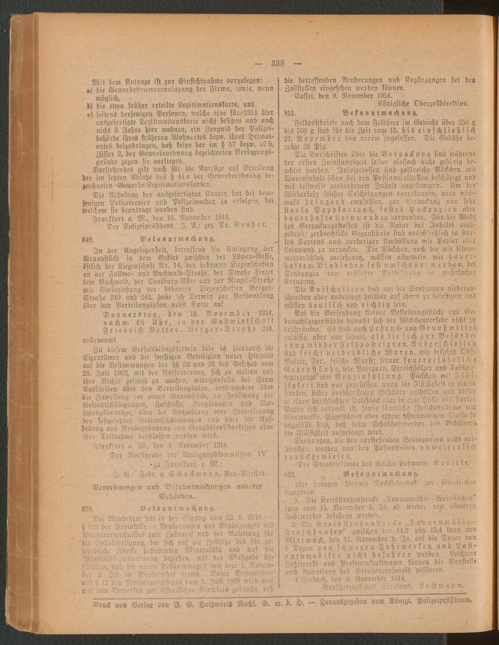 Amtsblatt für den Stadtkreis Frankfurt a.M.. 1828-1918