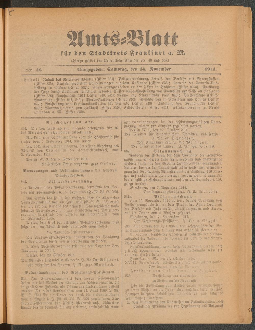 Amtsblatt für den Stadtkreis Frankfurt a.M.. 1828-1918