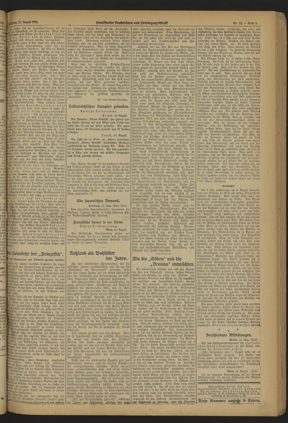 Frankfurter Nachrichten und Intelligenzblatt. 1914-1918