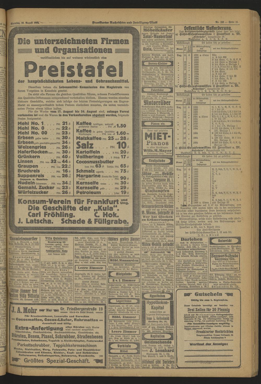 Frankfurter Nachrichten und Intelligenzblatt. 1914-1918