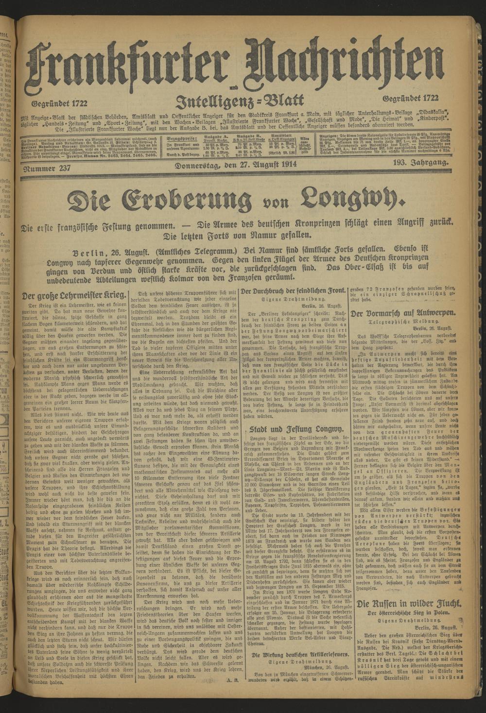 Frankfurter Nachrichten und Intelligenzblatt. 1914-1918