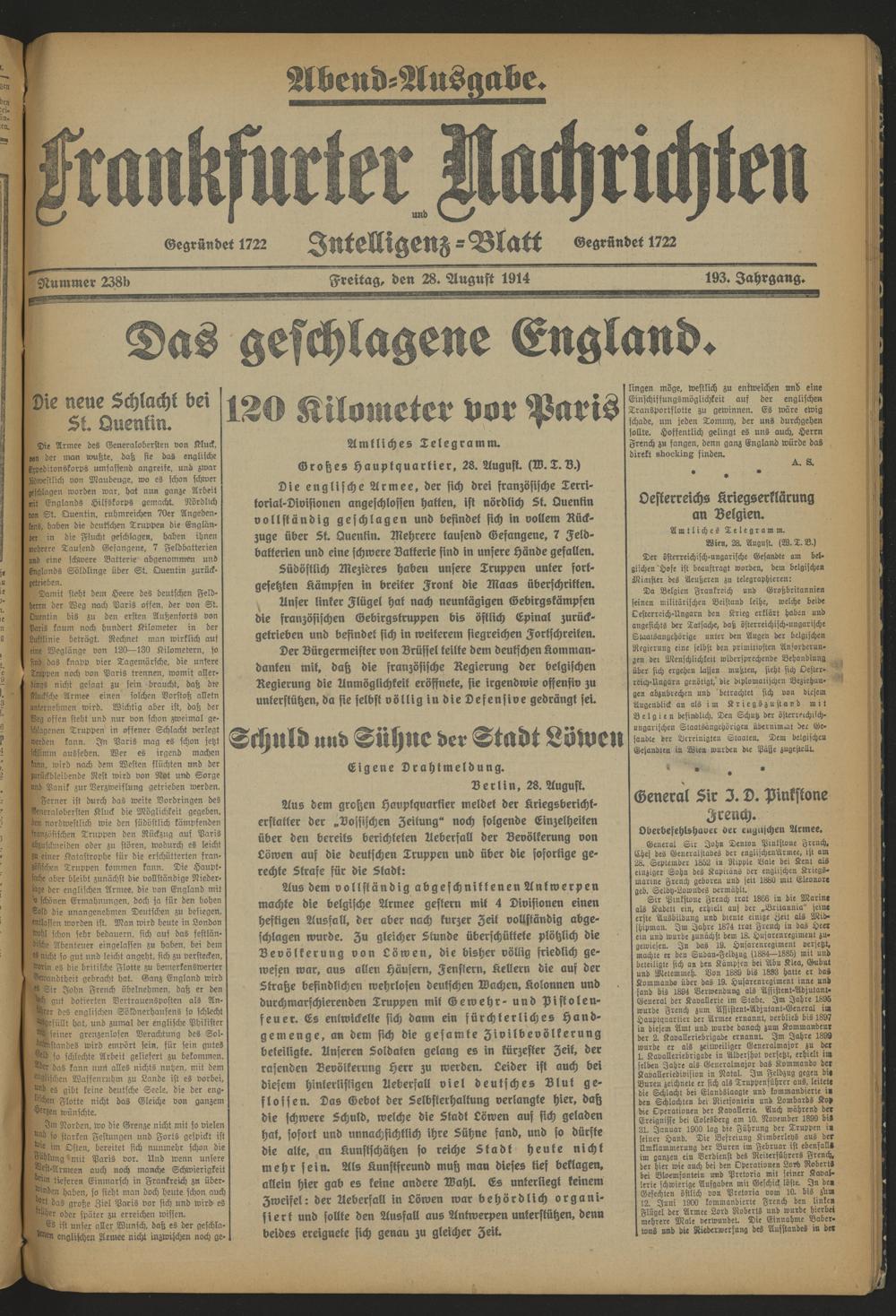 Frankfurter Nachrichten und Intelligenzblatt. 1914-1918