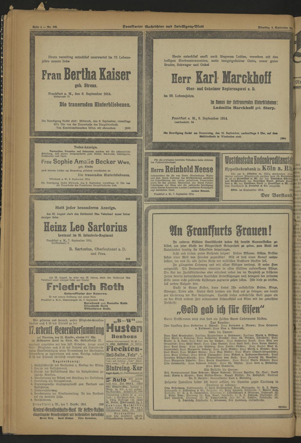 Frankfurter Nachrichten und Intelligenzblatt. 1914-1918