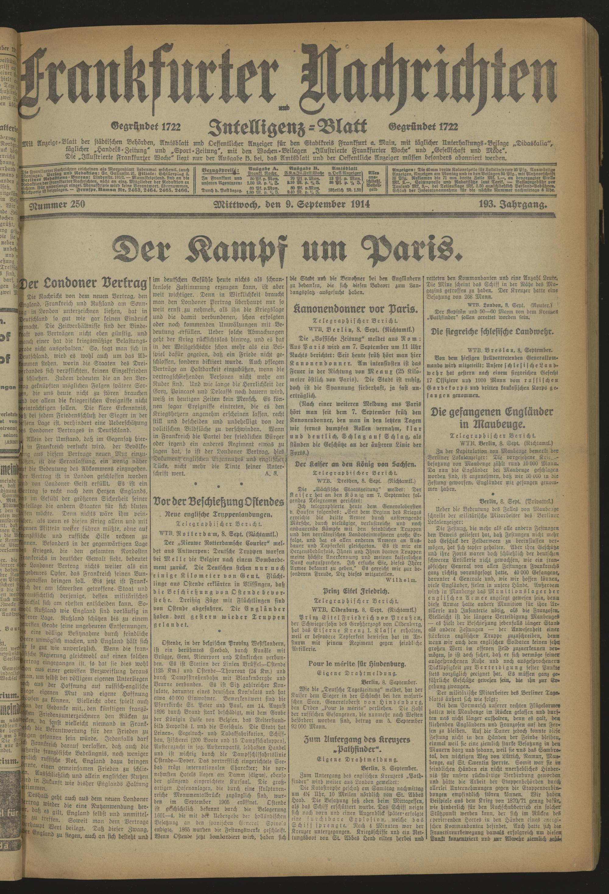 Frankfurter Nachrichten und Intelligenzblatt. 1914-1918