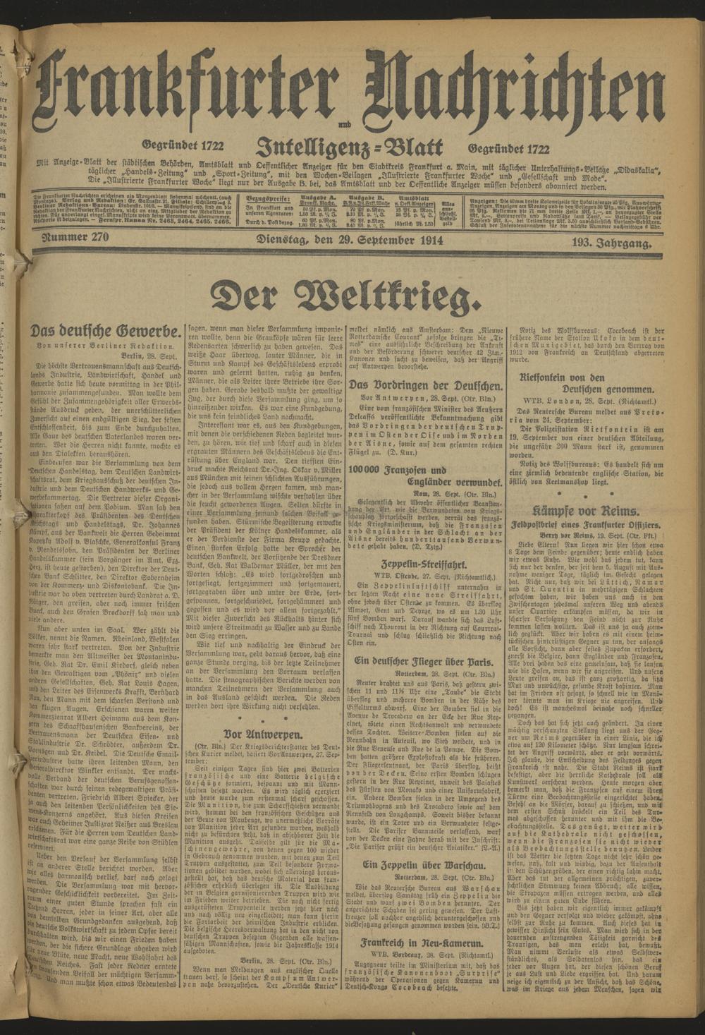 Frankfurter Nachrichten und Intelligenzblatt. 1914-1918