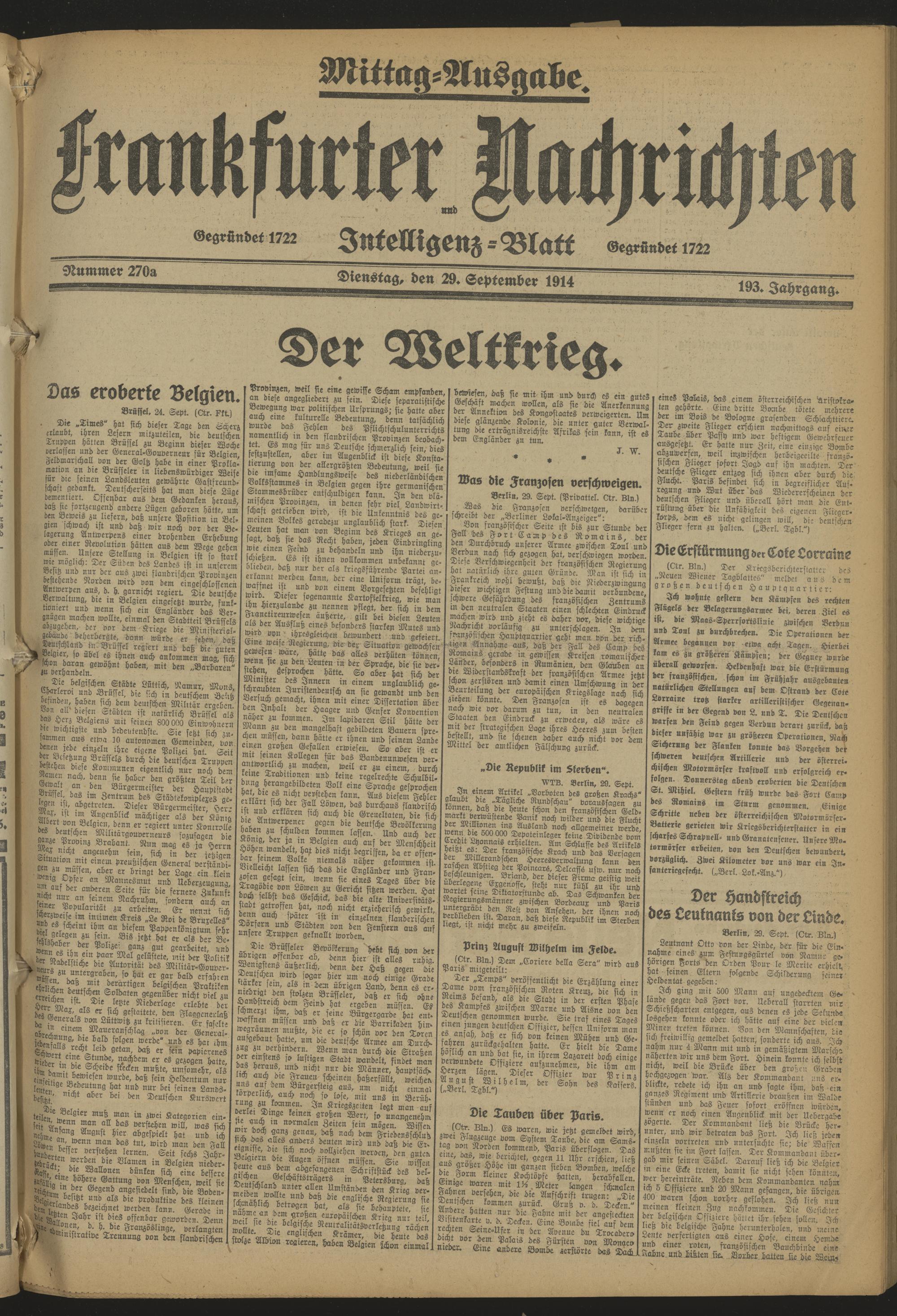 Frankfurter Nachrichten und Intelligenzblatt. 1914-1918