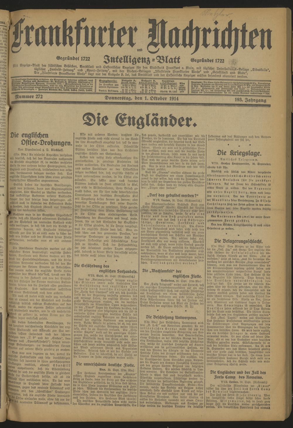 Frankfurter Nachrichten und Intelligenzblatt. 1914-1918