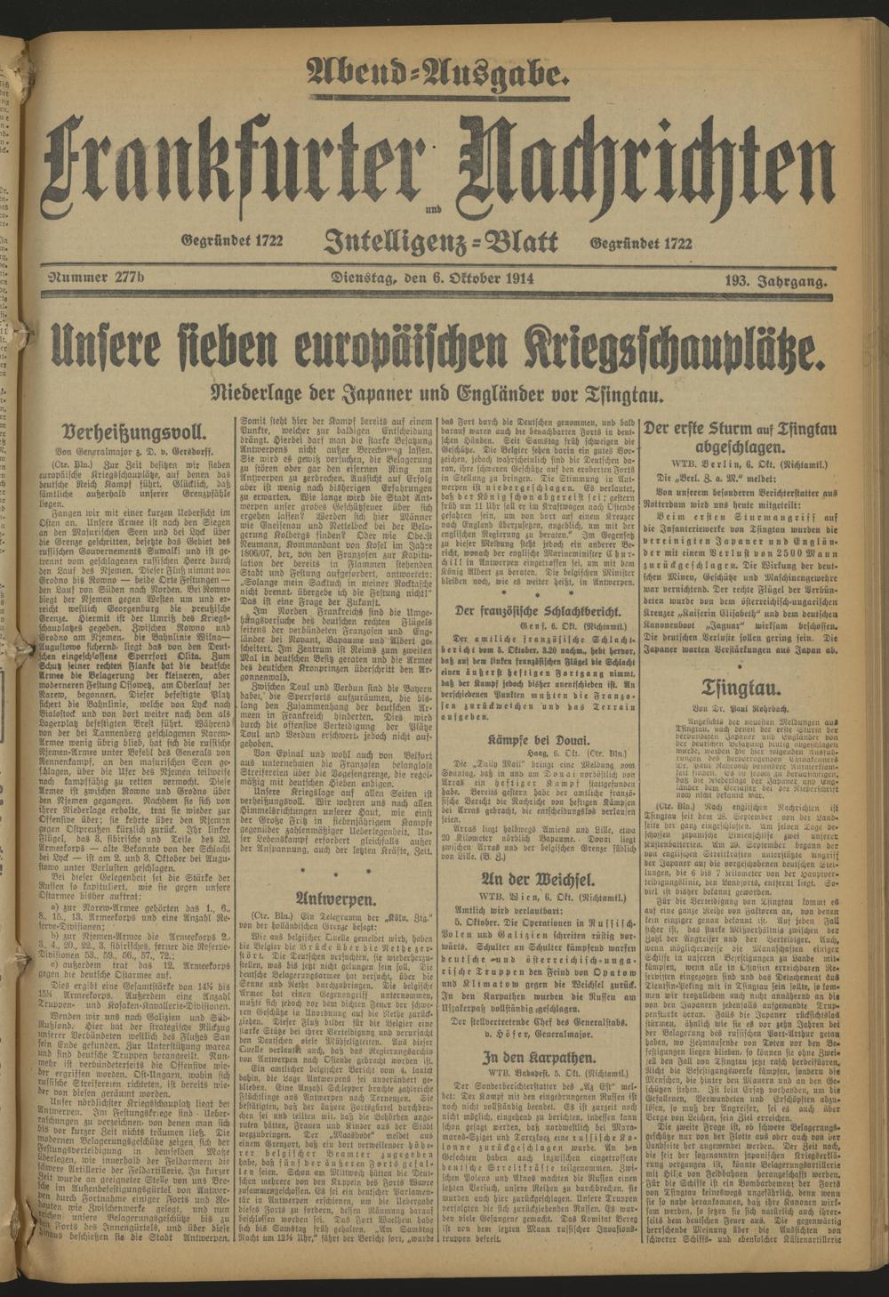 Frankfurter Nachrichten und Intelligenzblatt. 1914-1918