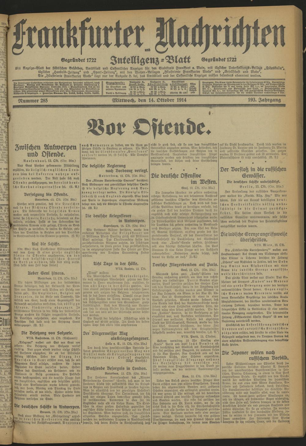 Frankfurter Nachrichten und Intelligenzblatt. 1914-1918