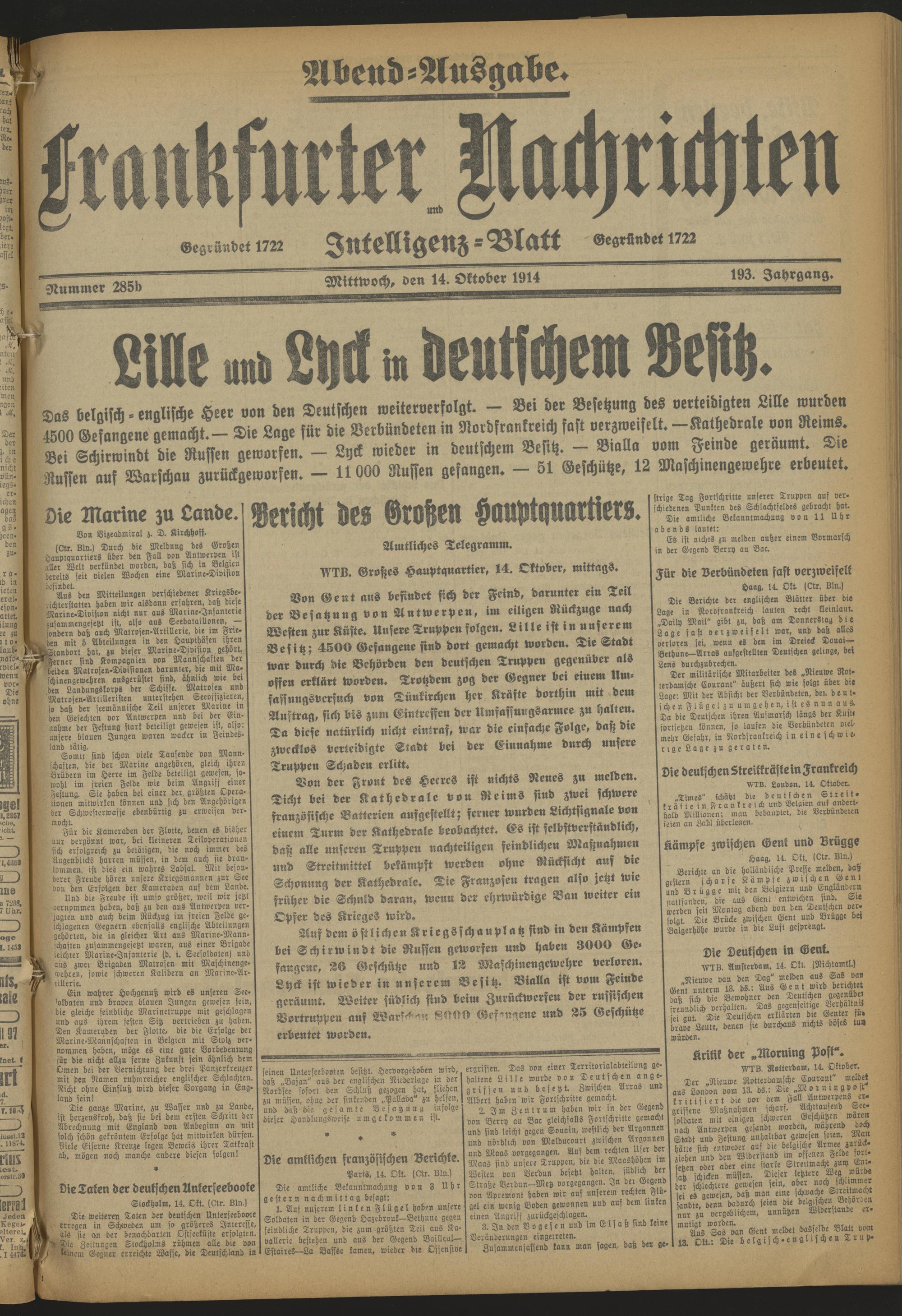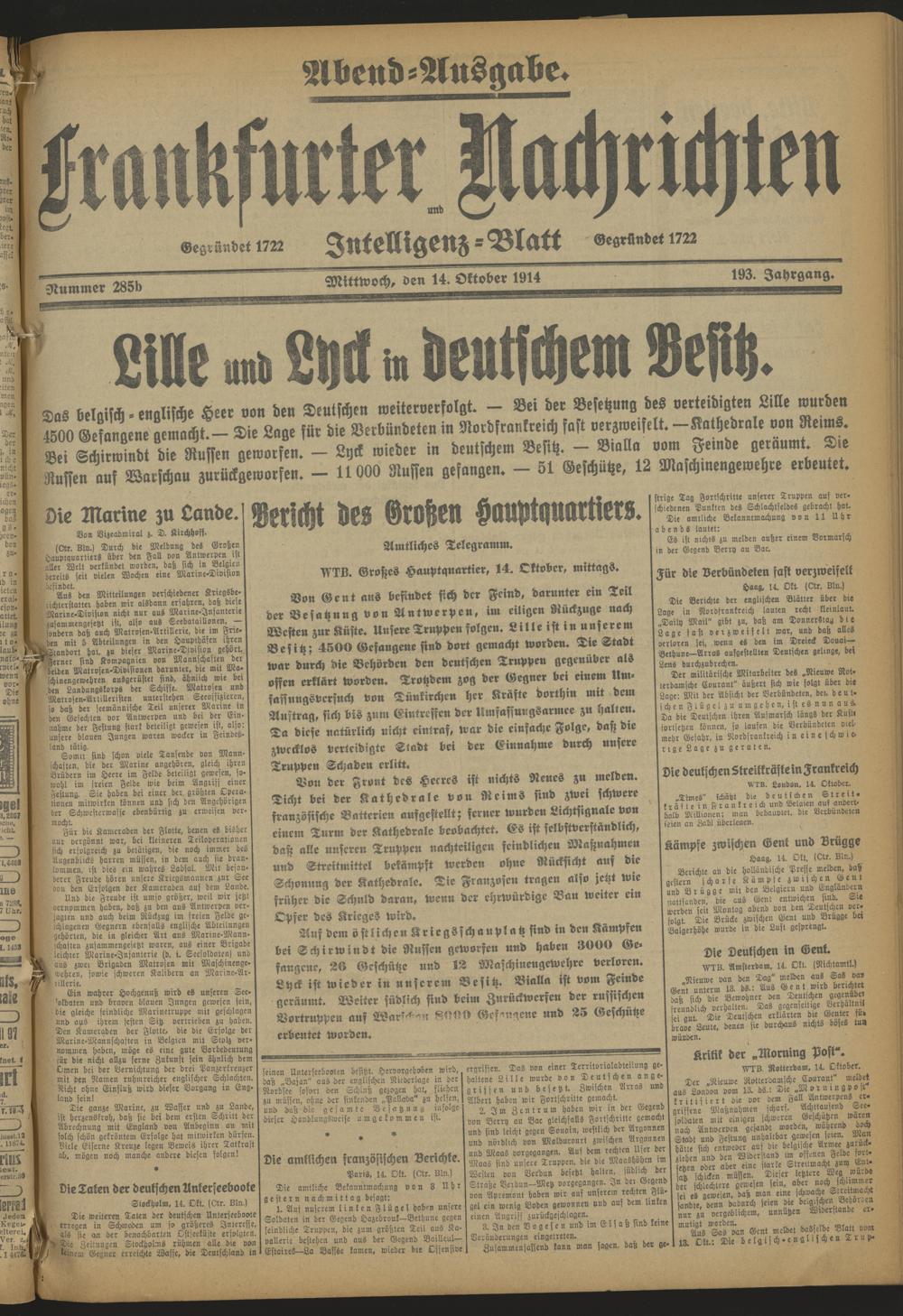 Frankfurter Nachrichten und Intelligenzblatt. 1914-1918