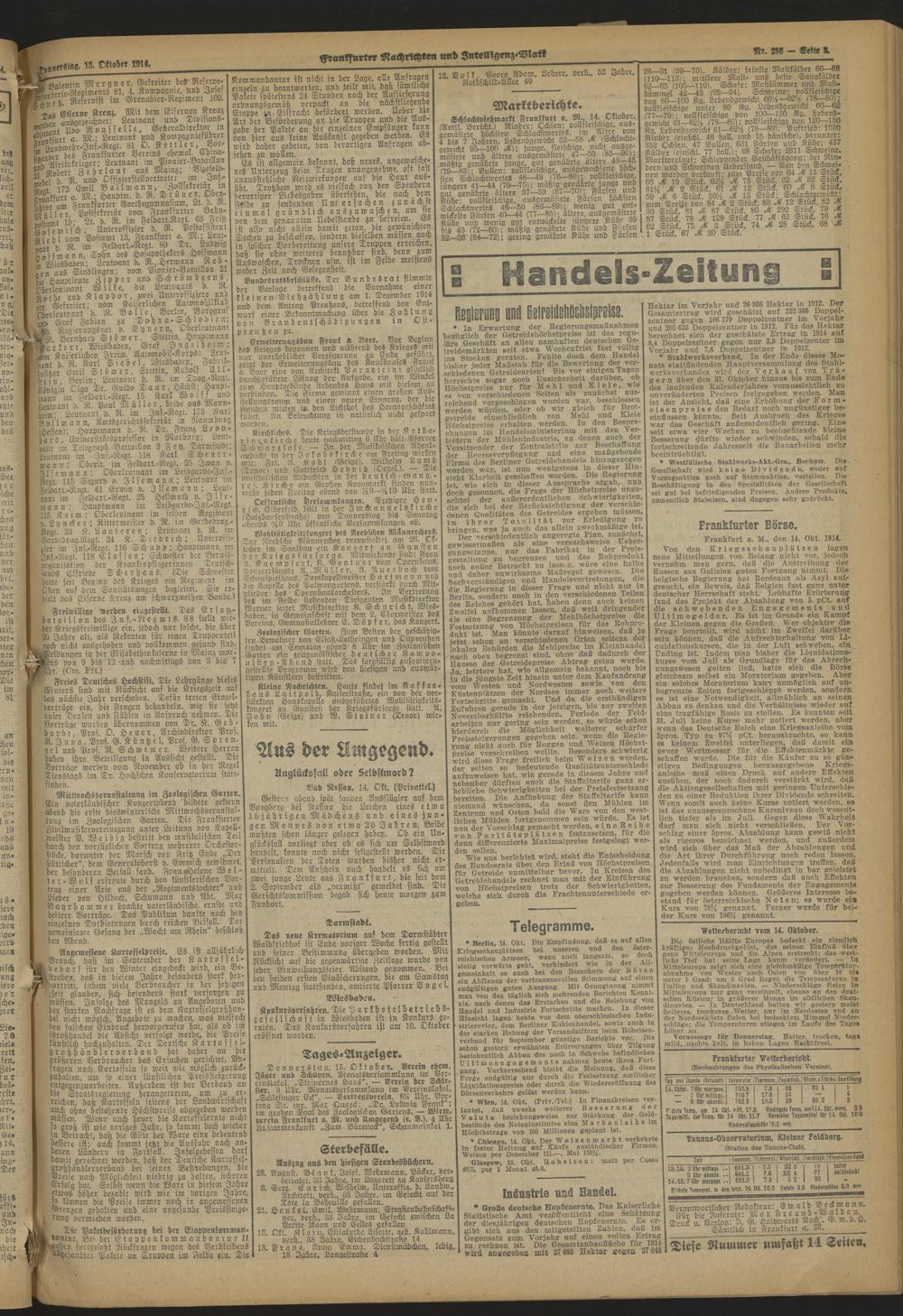 Frankfurter Nachrichten und Intelligenzblatt. 1914-1918