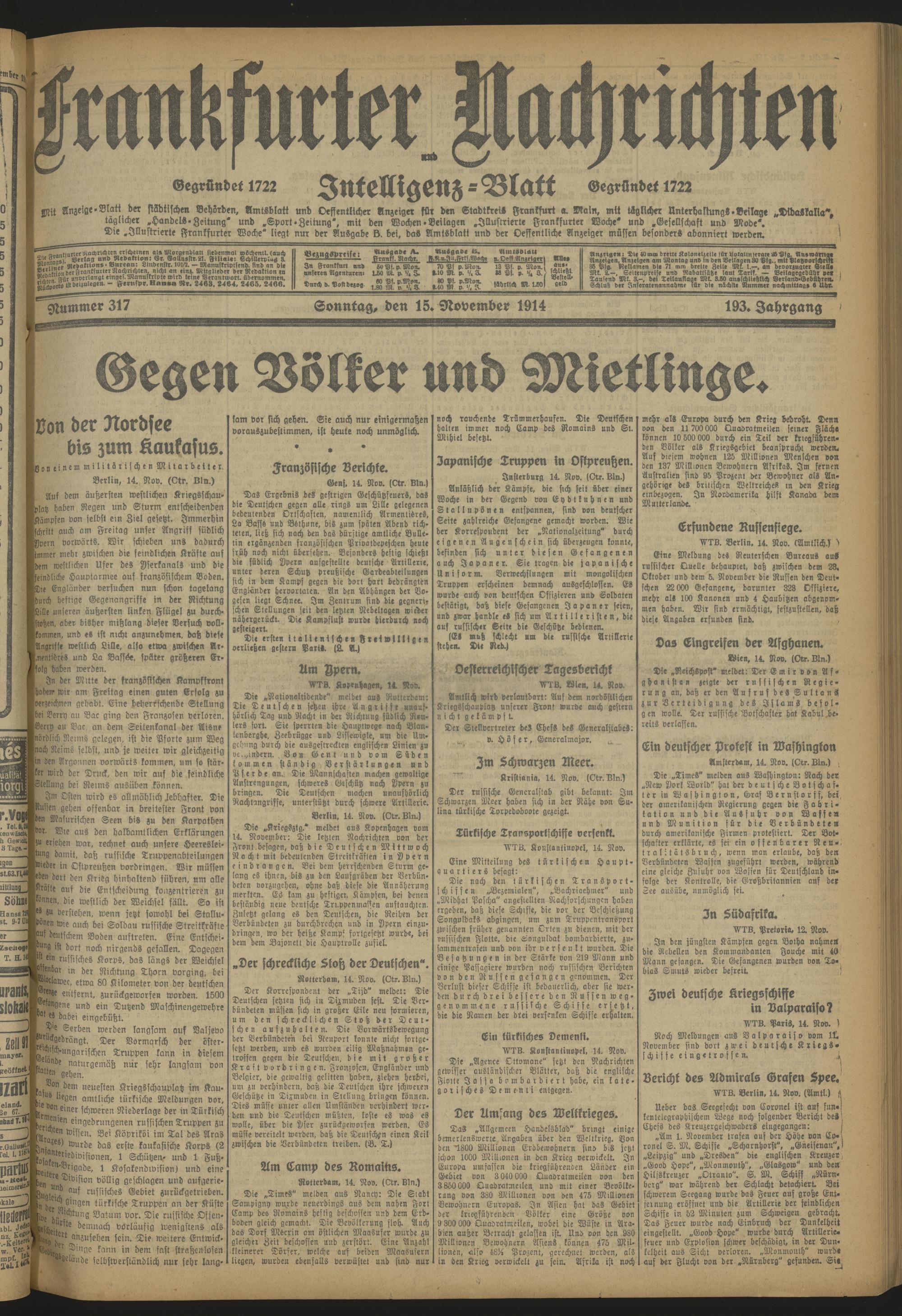 Frankfurter Nachrichten und Intelligenzblatt. 1914-1918
