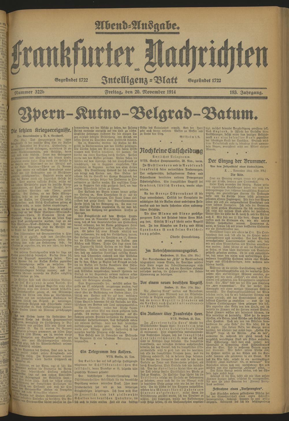 Frankfurter Nachrichten und Intelligenzblatt. 1914-1918
