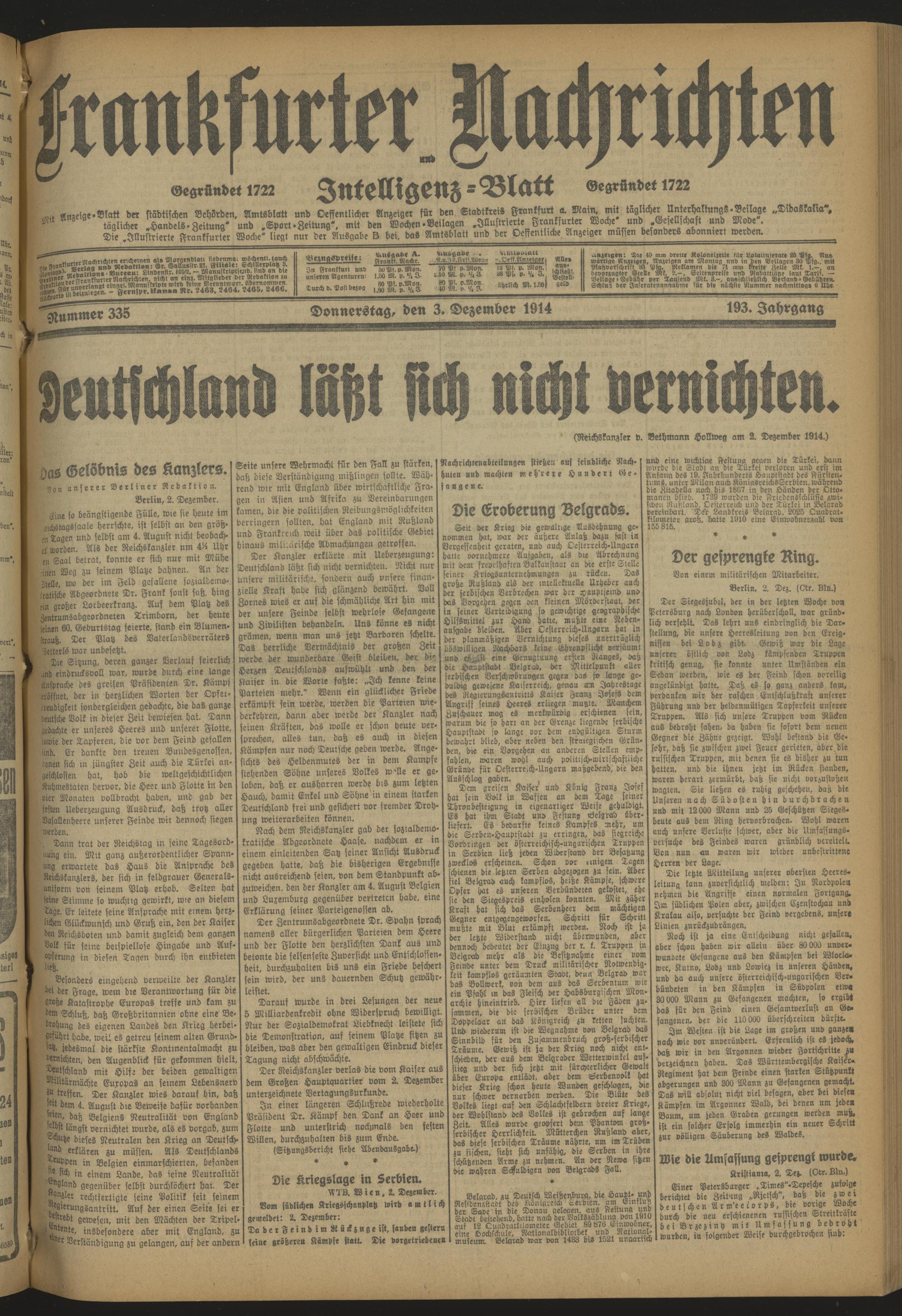 Frankfurter Nachrichten und Intelligenzblatt. 1914-1918