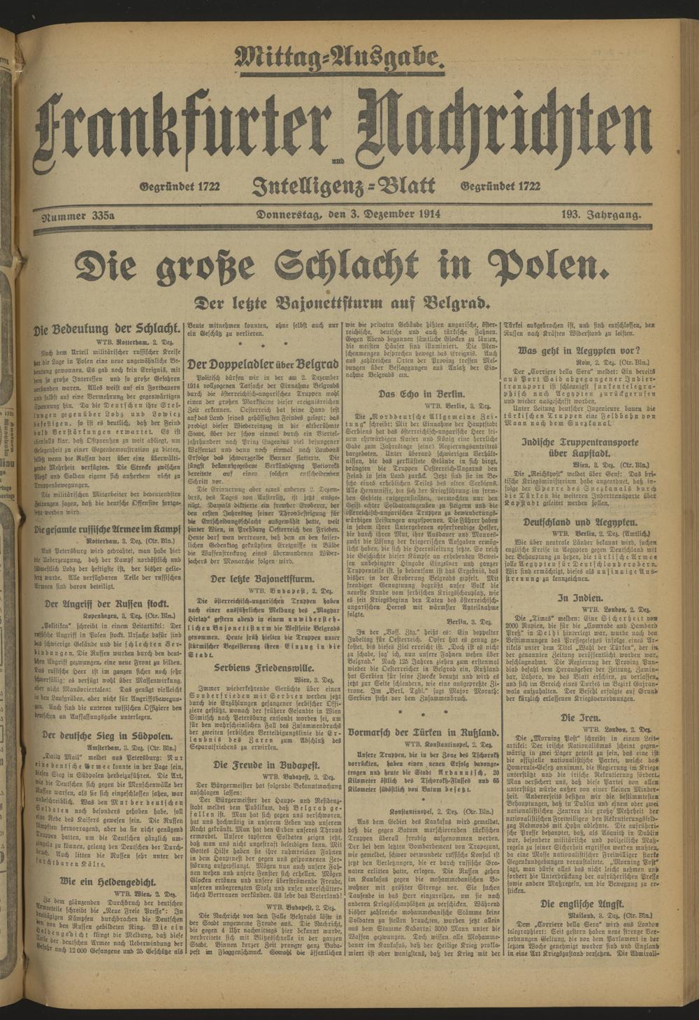 Frankfurter Nachrichten und Intelligenzblatt. 1914-1918
