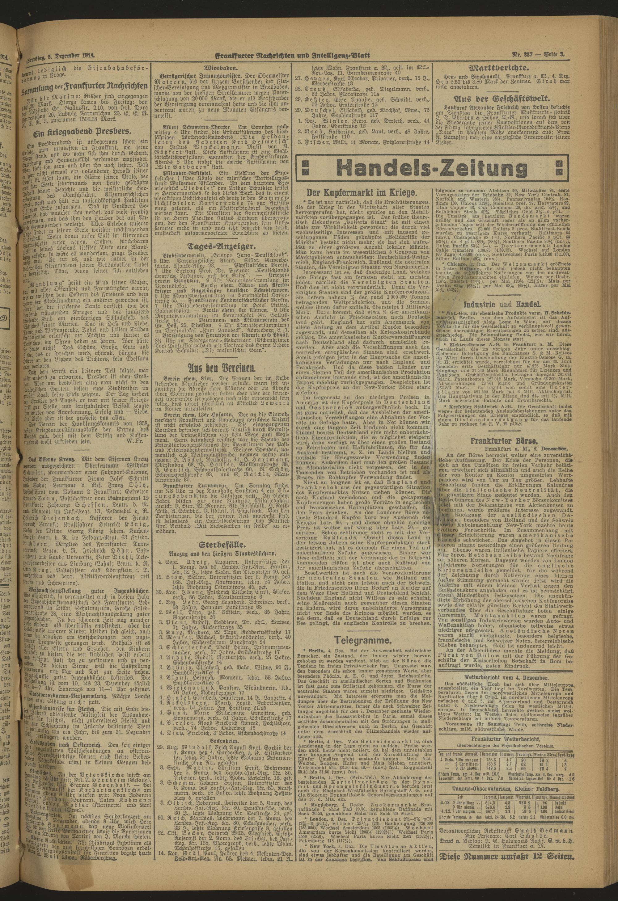 Frankfurter Nachrichten und Intelligenzblatt. 1914-1918