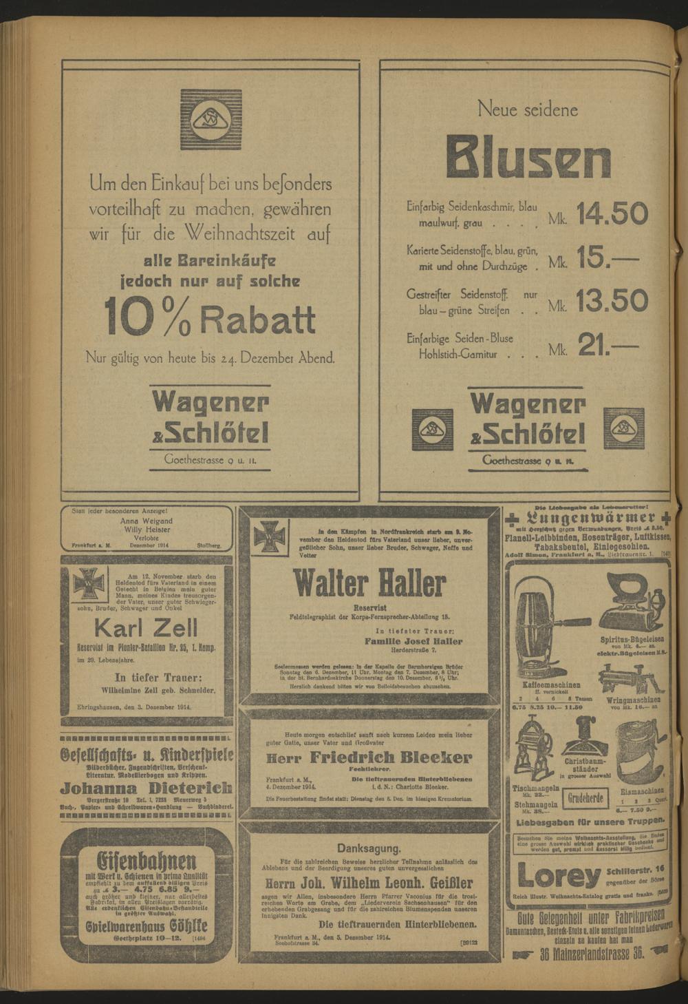 Frankfurter Nachrichten und Intelligenzblatt. 1914-1918